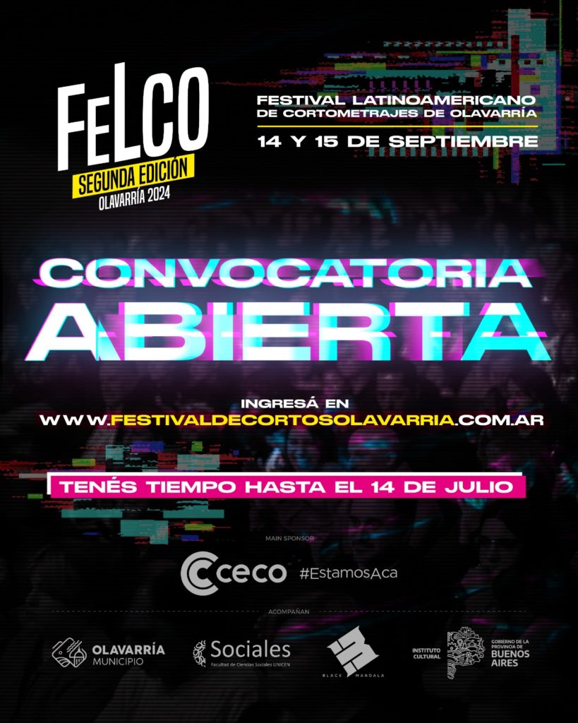 Tras el éxito de la primera edición, se anunciaron las fechas y se abrió la convocatoria para la segunda edición del Festival Latinoamericano de Cortometrajes de Olavarría (FeLCO). Será el 14 y 15 de septiembre del 2024