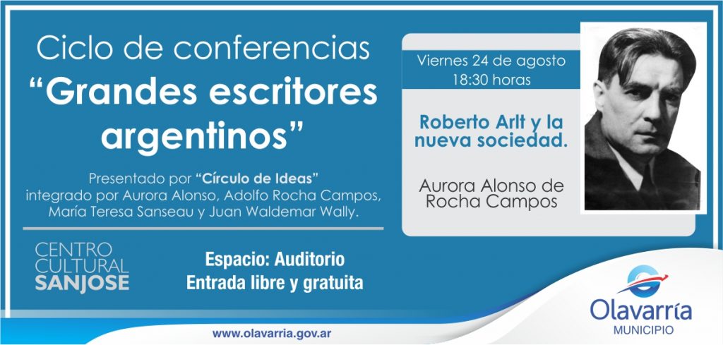 El programa se iniciará el próximo viernes 24 de agosto, a las 18:30 horas, con la presentación de Aurora Alonso sobre “Roberto Arlt y la nueva sociedad”. Luego continuará los días viernes, en el mismo horario, el 7 de septiembre con Adolfo Rocha Campos, con “Raúl Scalabrini Ortiz. Sustancia y forma”.