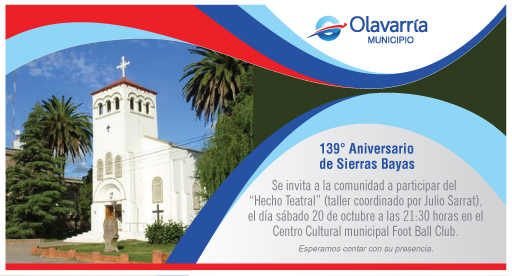 El sábado 20 de octubre Sierras Bayas celebra 139 años de su fundación y para los festejos la comunidad prepara dos días de actividades que comenzarán en la mañana sabatina.