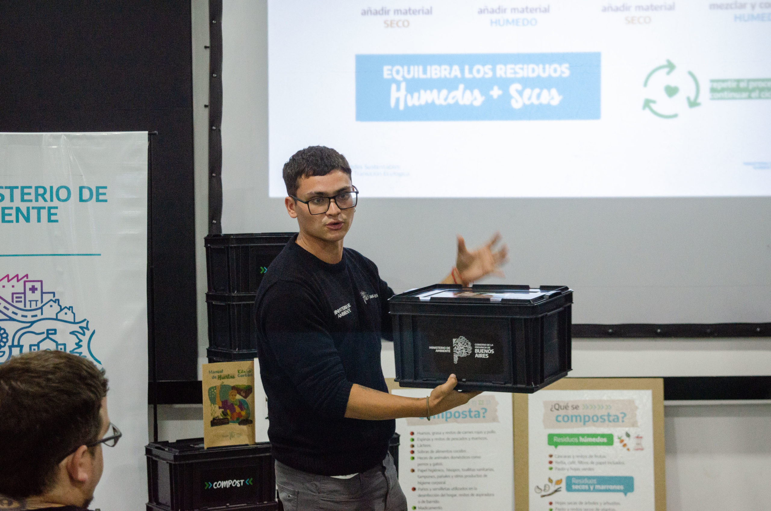 En la tarde del último martes el salón auditorio del Museo de Ciencias “Ing. Rita Toniutti”, ubicado en el Polo Educativo y Recreativo Municipal “La Máxima”, se llevó a cabo un nuevo taller de compostaje, propuesta brindada en conjunto entre la Coordinación de Ambiente de la Secretaría de Desarrollo Económico y Productivo y el Ministerio de Ambiente de la Provincia de Buenos Aires. La jornada contó con una importante convocatoria y tras la capacitación se realizó la entrega de composteras.