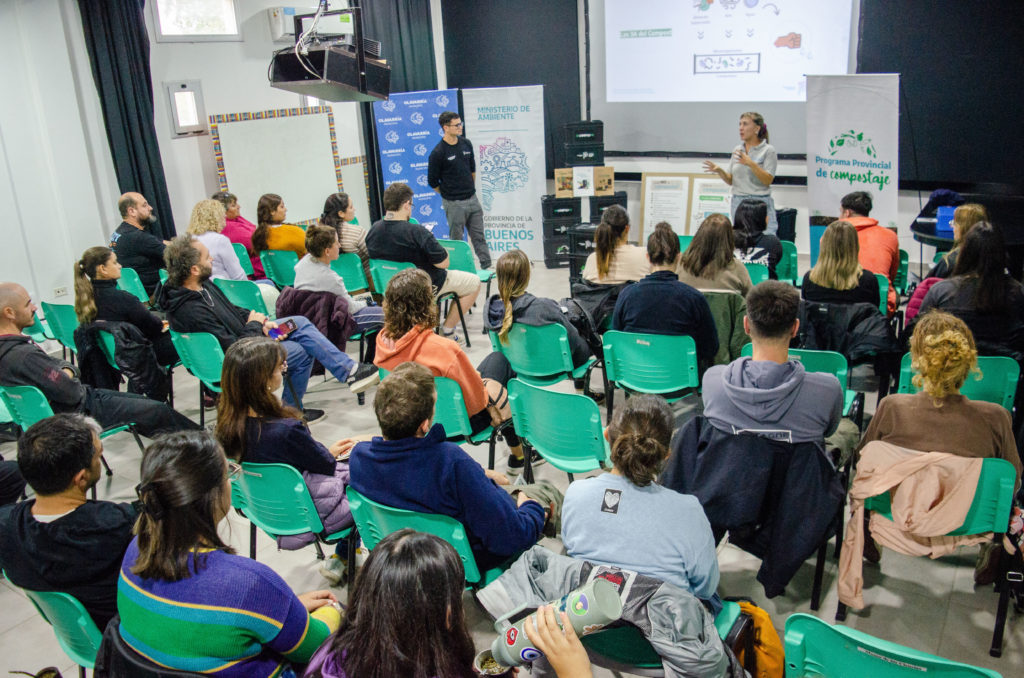 En la tarde del último martes el salón auditorio del Museo de Ciencias “Ing. Rita Toniutti”, ubicado en el Polo Educativo y Recreativo Municipal “La Máxima”, se llevó a cabo un nuevo taller de compostaje, propuesta brindada en conjunto entre la Coordinación de Ambiente de la Secretaría de Desarrollo Económico y Productivo y el Ministerio de Ambiente de la Provincia de Buenos Aires. La jornada contó con una importante convocatoria y tras la capacitación se realizó la entrega de composteras.