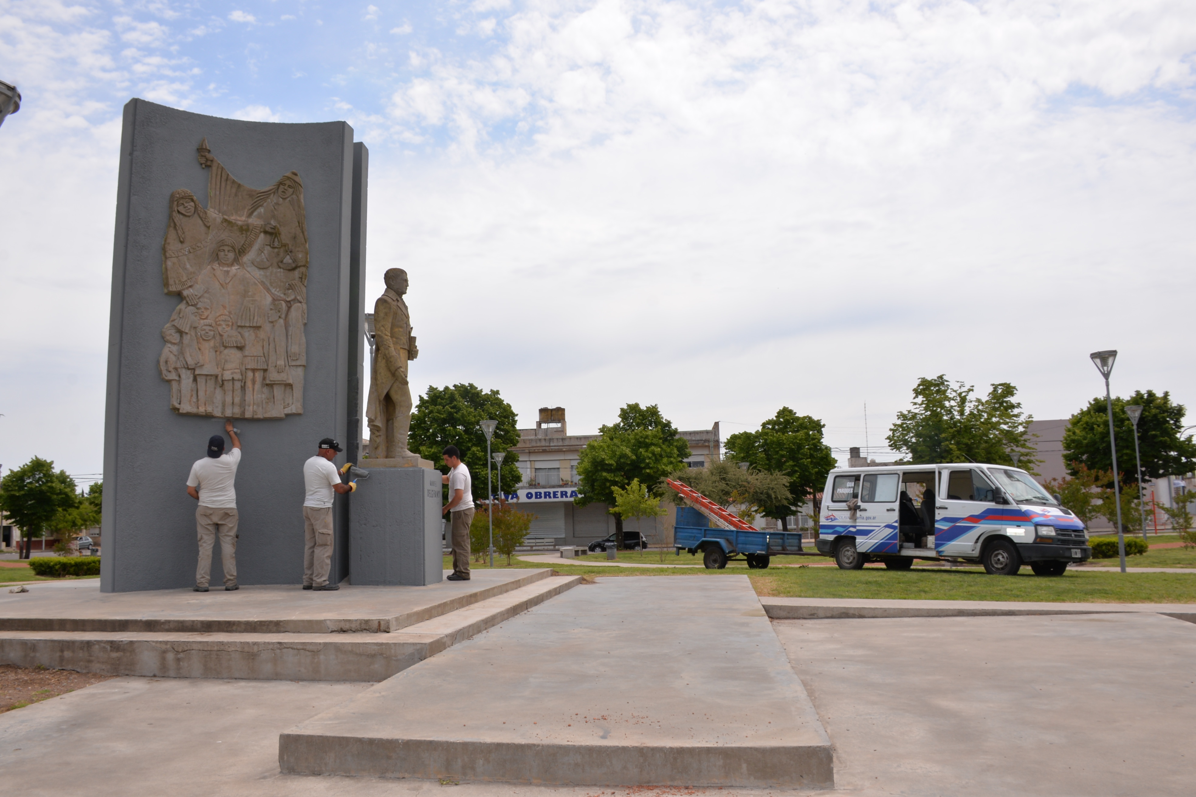 Es así que en la jornada de este miércoles, personal de la Dirección de Parques y Paseos, dependiente de la Subsecretaría de Obras y Servicios Públicos de la Municipalidad del Partido de Olavarría, ha trabajado en la pintura de la escultura central de la plaza “Manuel Belgrano”, del Barrio San Vicente.