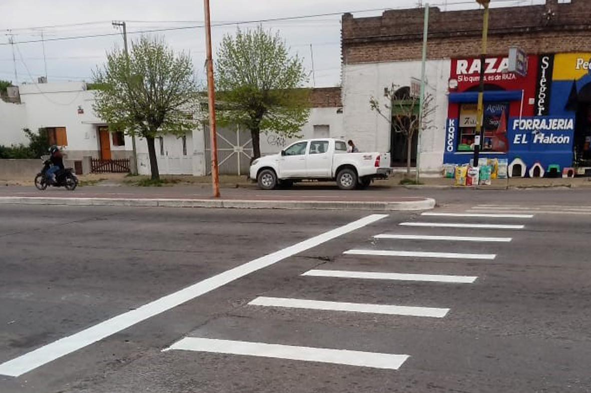 Se reforzó la pintura de sendas peatonales en Colón e Ituzaingó y en Chacabuco y Colón, como así también de conos de visibilidad en el microcentro y en inmediaciones del Club El Fortín.