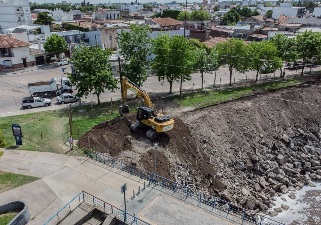 Los trabajos se concentran sobre el sector lindero al puente de calle Hornos, donde en la mañana de este martes comenzó a volcarse tierra y distribuir escombros para evitar el socavamiento.