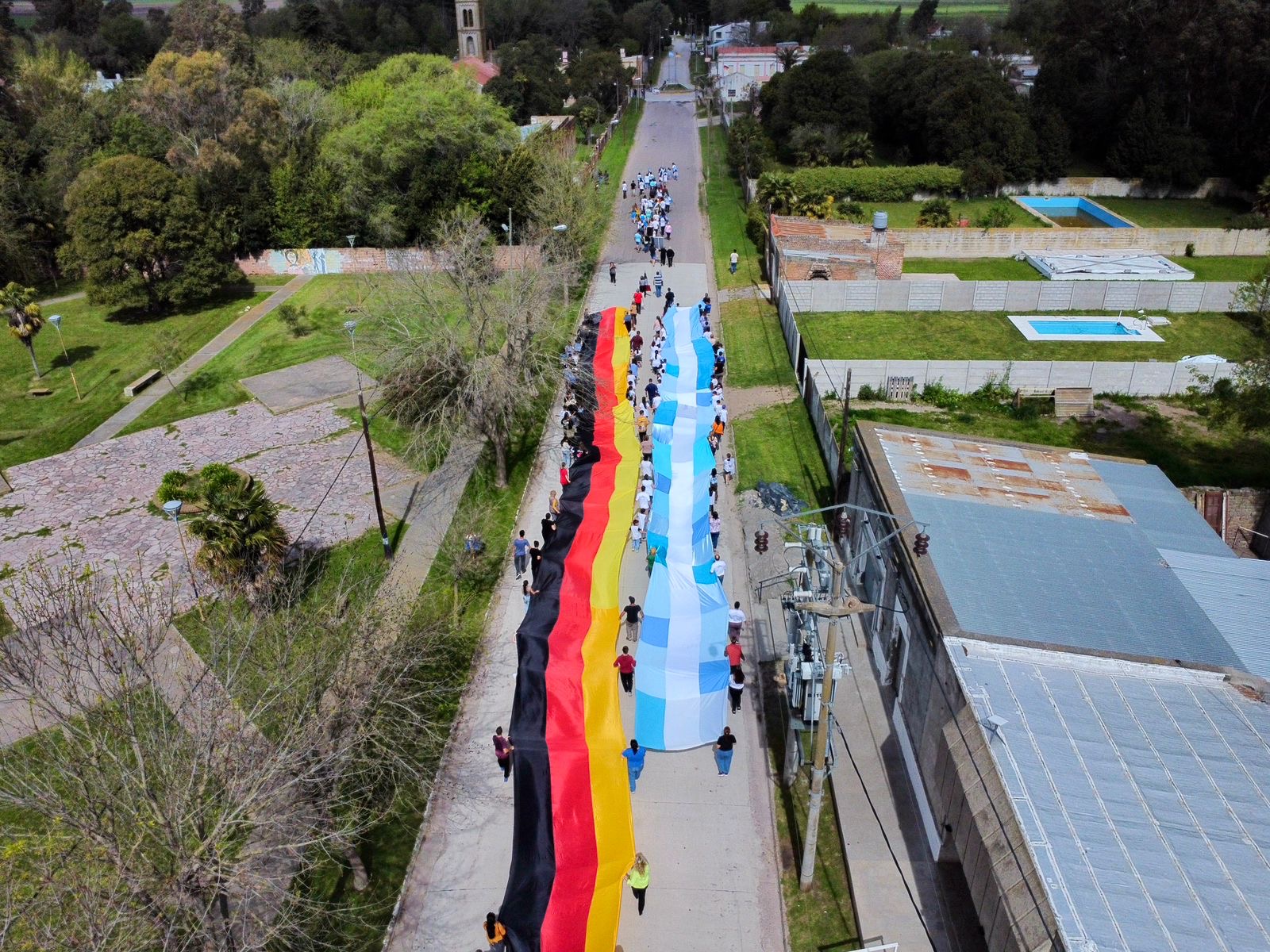 Además, también estuvieron presentes las banderas de ceremonia del Jardín de Infantes N° 920, de la Escuela Primaria N° 5 y de la Escuela de Educación Media N°2 Anexo 3021. También se pudieron ver banderas tanto argentinas como alemanas de numerosas instituciones.
