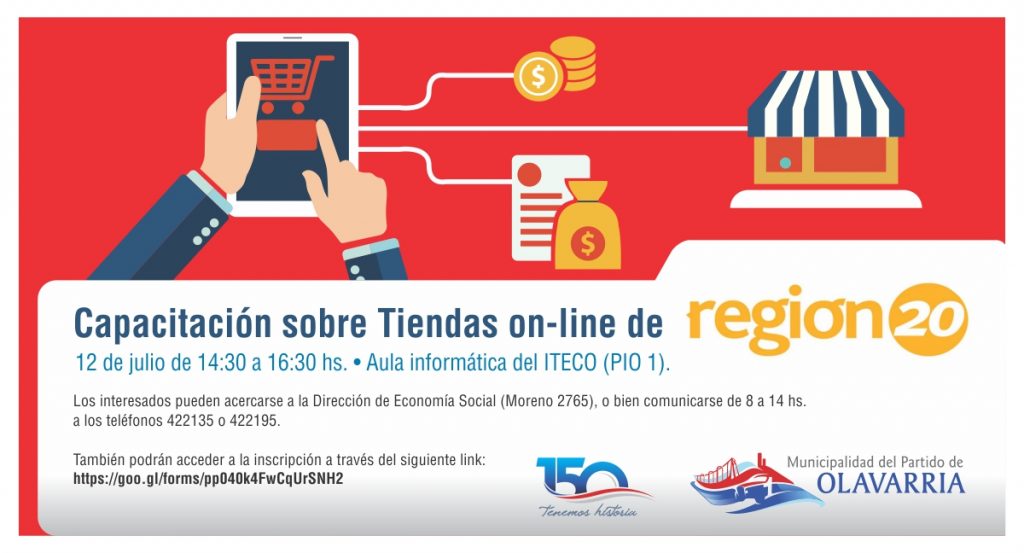Con este objetivo, se desarrollará una capacitación sobre tiendas on line de Región 20, el 12 de julio de 14:30 a 16:30 horas en el Aula de Informática del ITECO (PIO 1). Se encuentra abierta la inscripción para participar de la misma. Los interesados pueden acercarse a la sede de la Secretaría de Desarrollo Económico Moreno 2765, o bien comunicarse a los teléfonos 422135 o 422195.