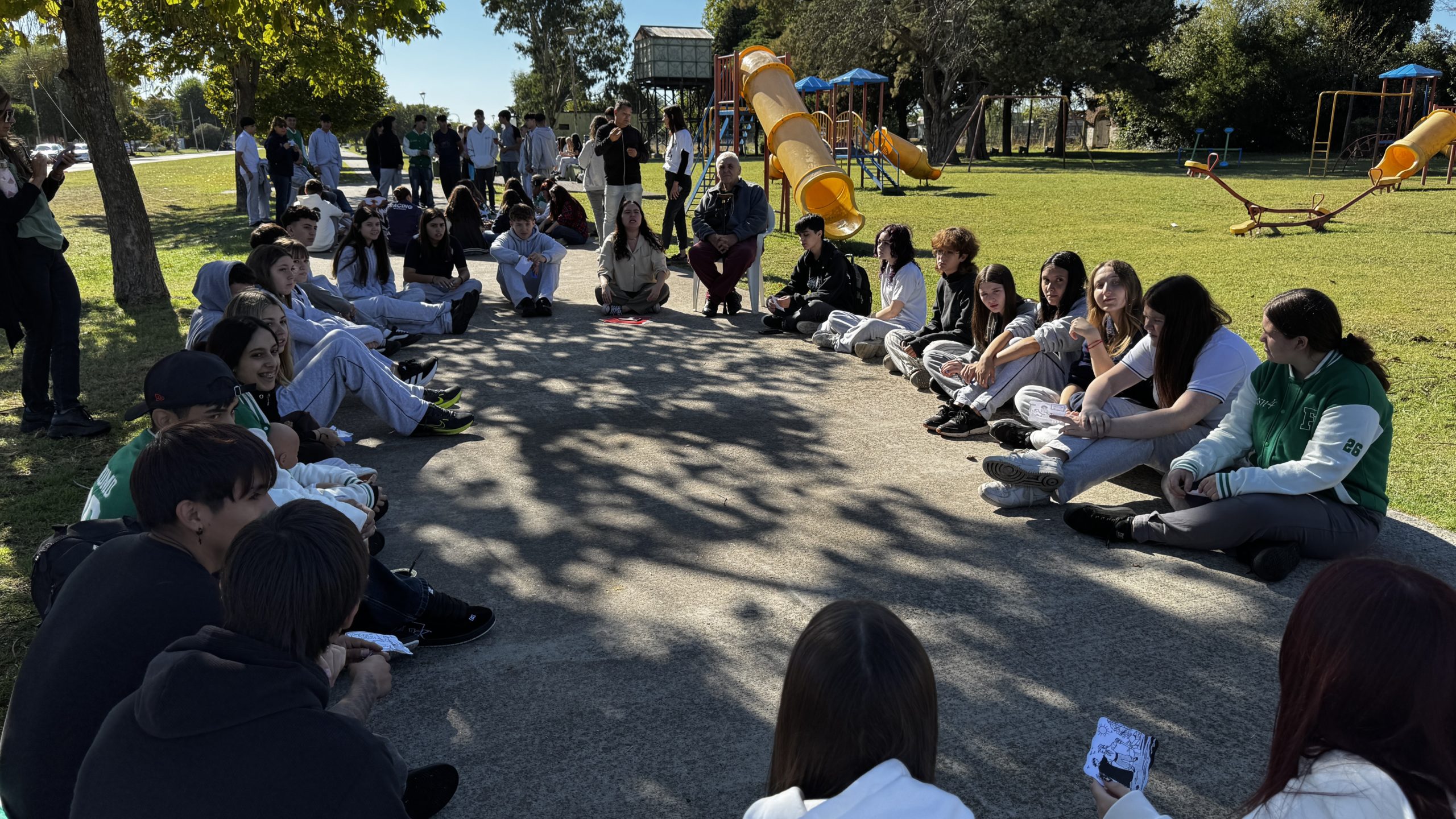 En ese marco, el Parque Mitre de Hinojo recibió esta mañana la actividad denominada “Rondas por la Memoria”, organizada desde la coordinación de juventudes de la Subsecretaría de Protección Integral de Derechos, con el objetivo precisamente de promover tanto la memoria activa como la participación comunitaria. En la ocasión, además, se contó con la presencia y participación de Carmelo Vinci y Eduardo Ferrante, ex detenidos durante la última dictadura y referentes de la Comisión por la Memoria de Olavarría.