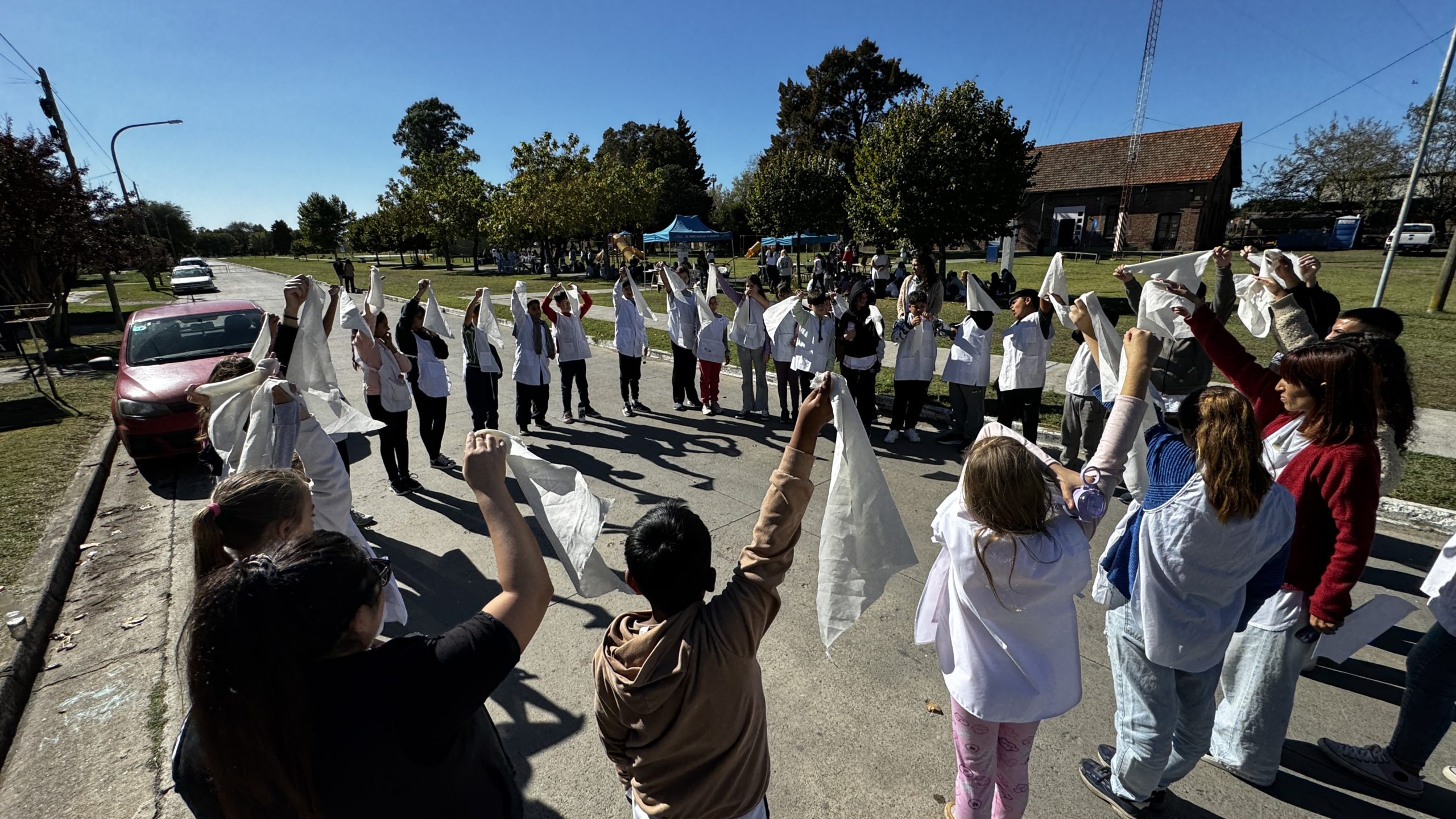 La actividad se realiza en adhesión a la campaña impulsada desde Abuelas de Plaza de Mayo, denominada “Florecerán Pañuelos”, en la que se invita a toda la comunidad a intervenir pañuelos con dibujos para luego compartirlos en redes sociales.