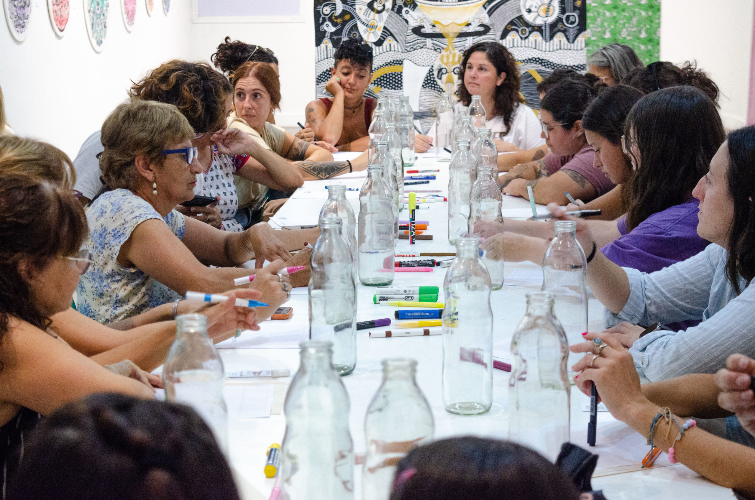 En el encuentro, los asistenes realizaron distintos dibujos en papel basados en la espontaneidad, que luego fueron transferidos a botellas de vidrio, con la idea de compartir, expresar y estimular la creatividad.