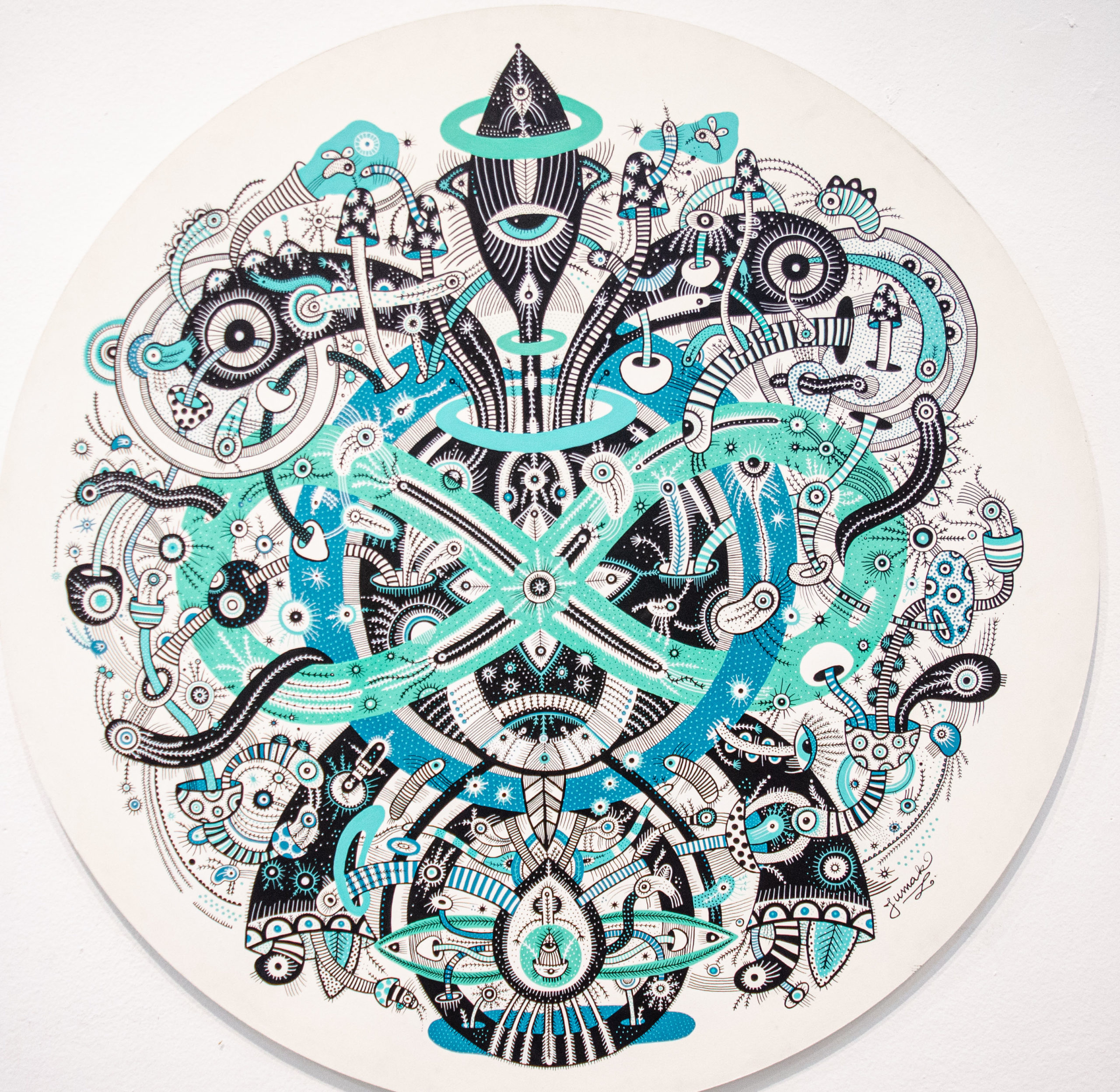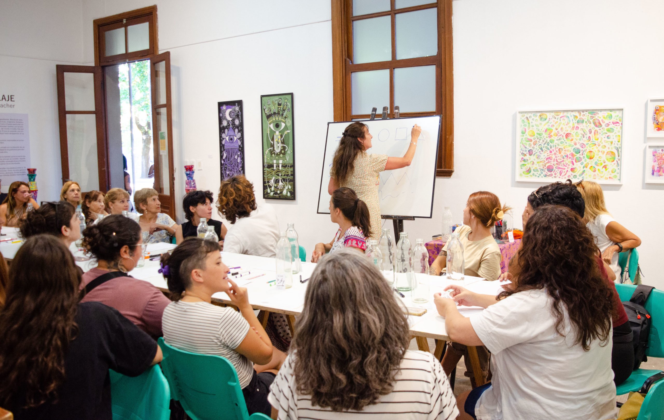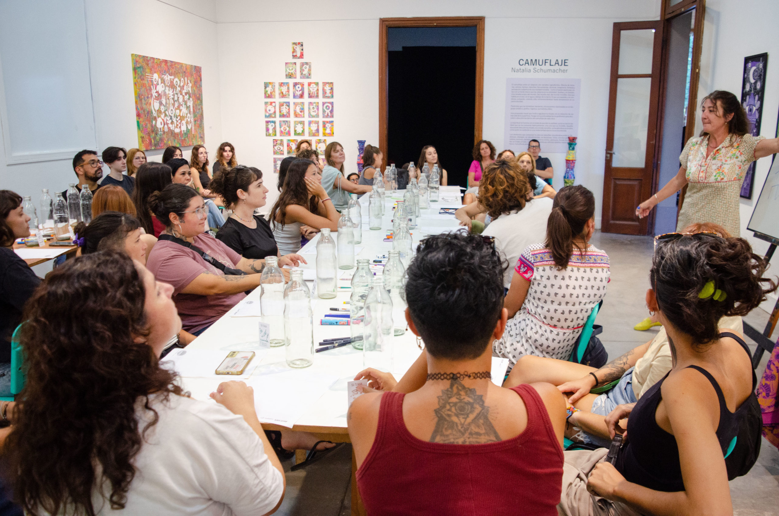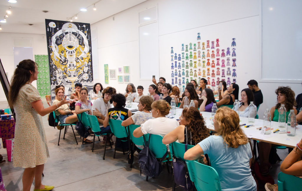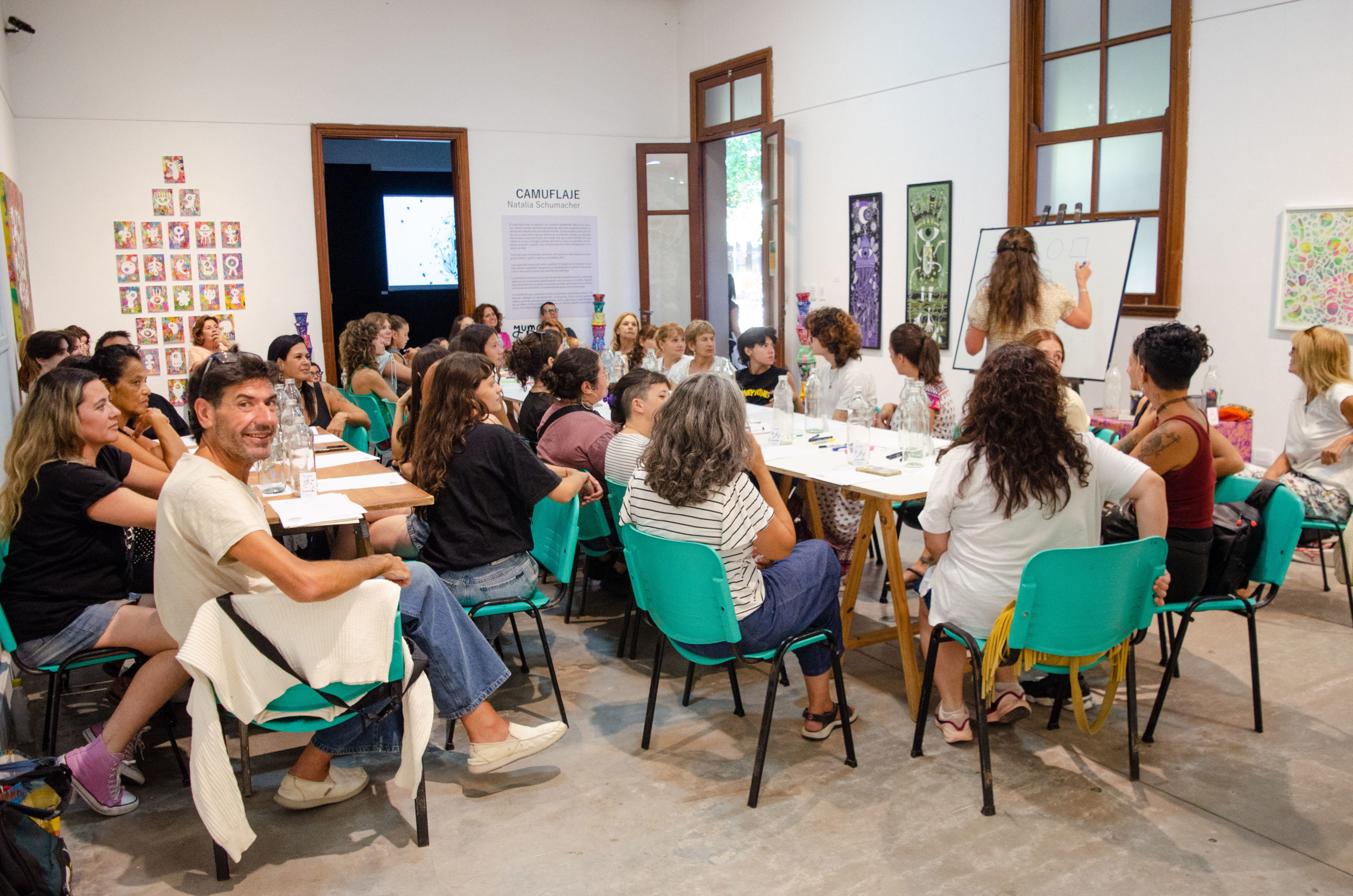 El taller se encuadró en la muestra “Camuflaje” de Schumacher -que se encuentra en exposición en Sala 2 del espacio cultural- y que reinvindica el concepto del garabato como expresión y se inspira en detalles de la naturaleza, el cosmos y el universo onírico.