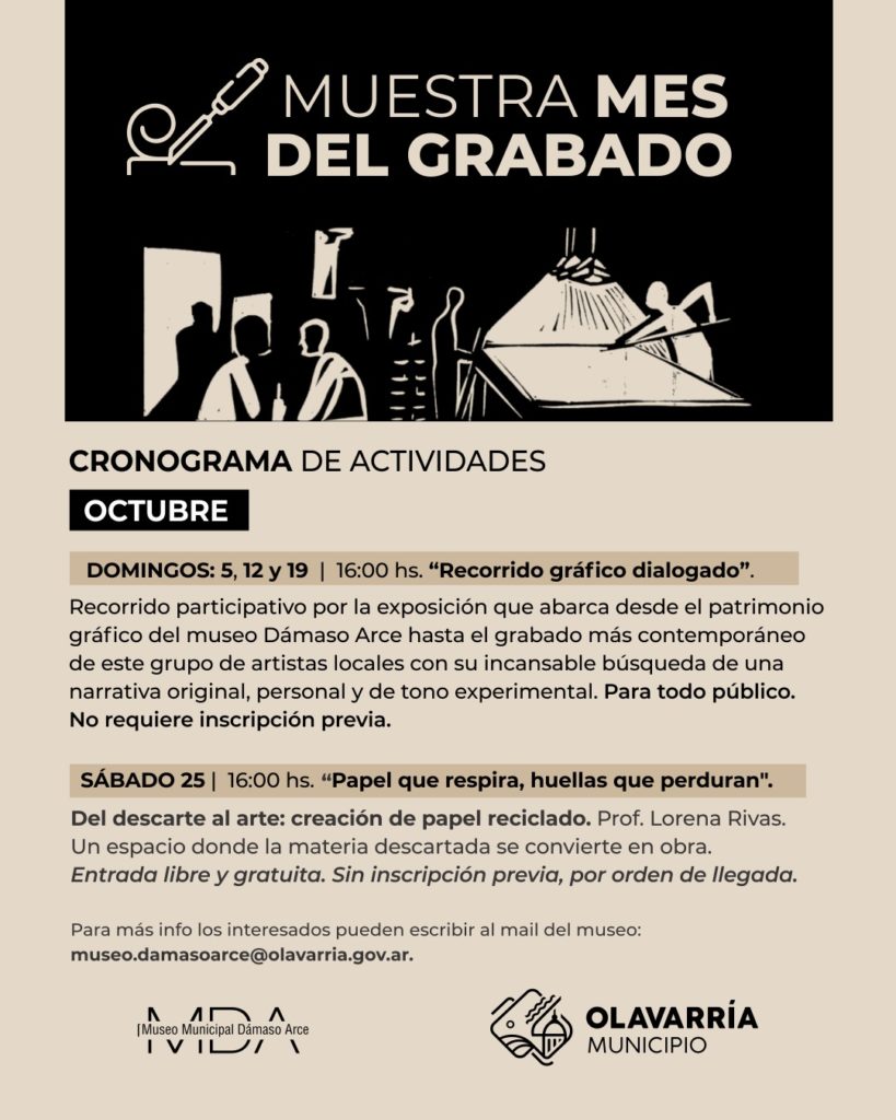 Para informes y más detalles sobre las actividades en el marco de esta exhibición, aquellas personas interesadas pueden escribir al mail del MDA museo.damasoarce@olavarria.gov.ar.