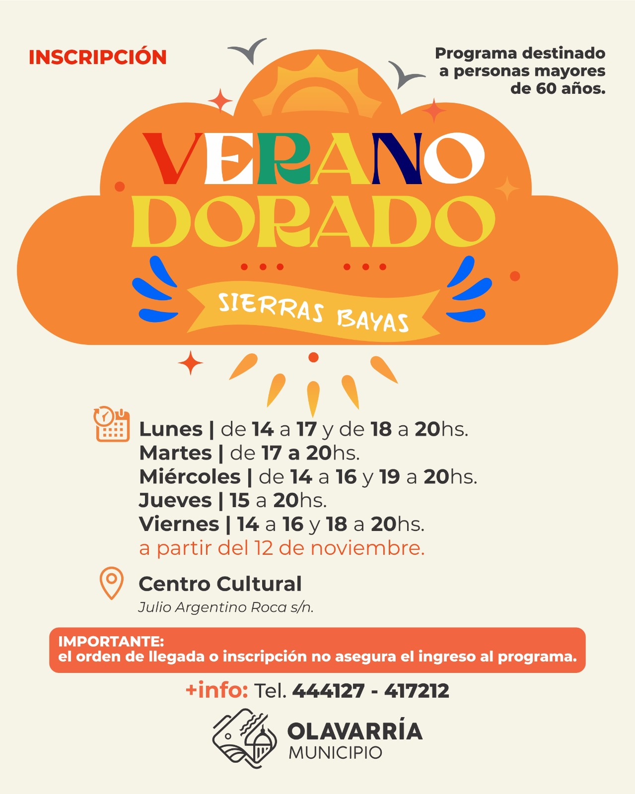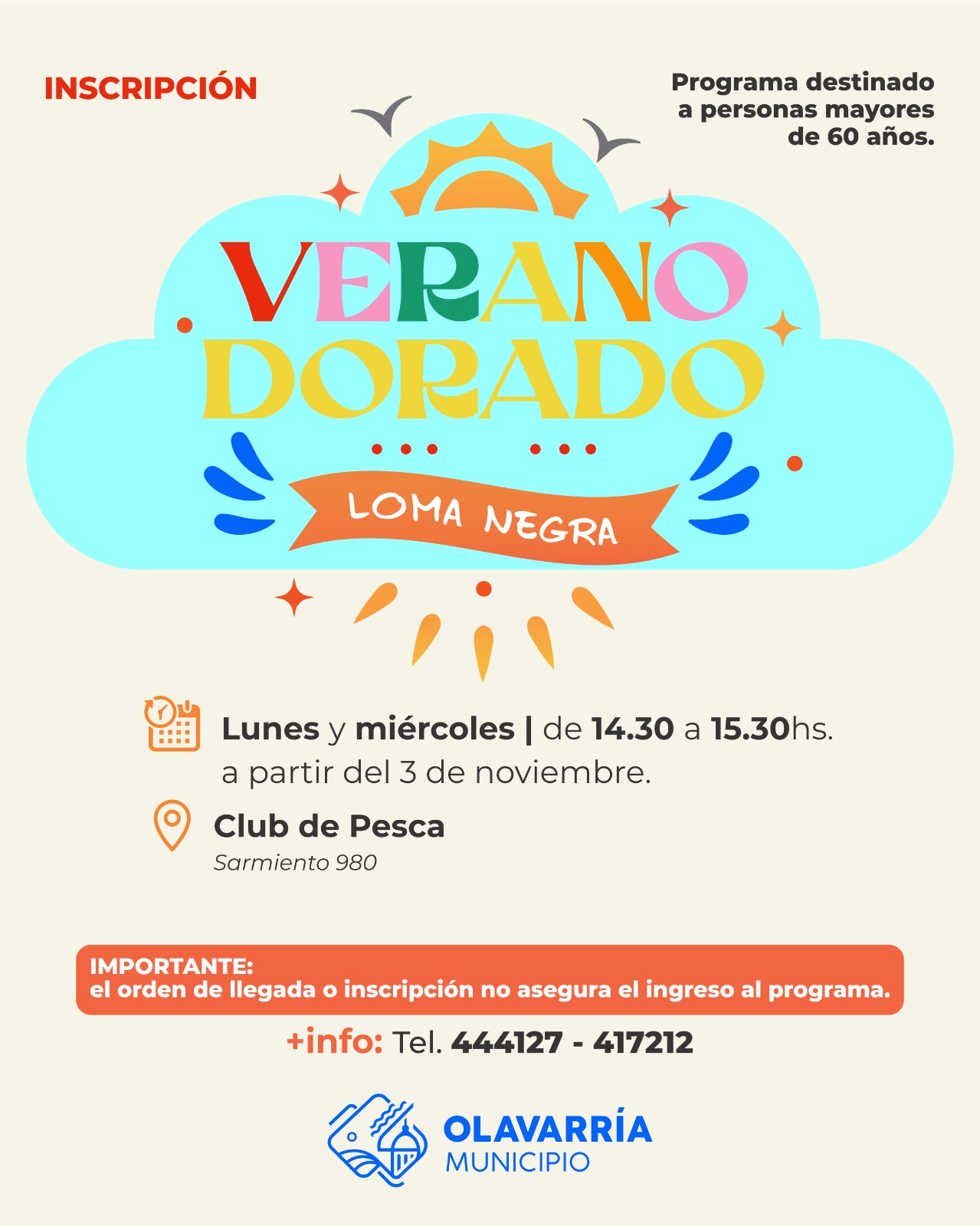“Verano Dorado” se prepara para el inicio de una nueva temporada, para lo cual abrirá sus inscripciones el próximo lunes 3 de noviembre. El tradicional programa recreativo y social destinado a personas mayores de 60 años es impulsado desde la Subsecretaría de Deportes del Municipio de Olavarría.
