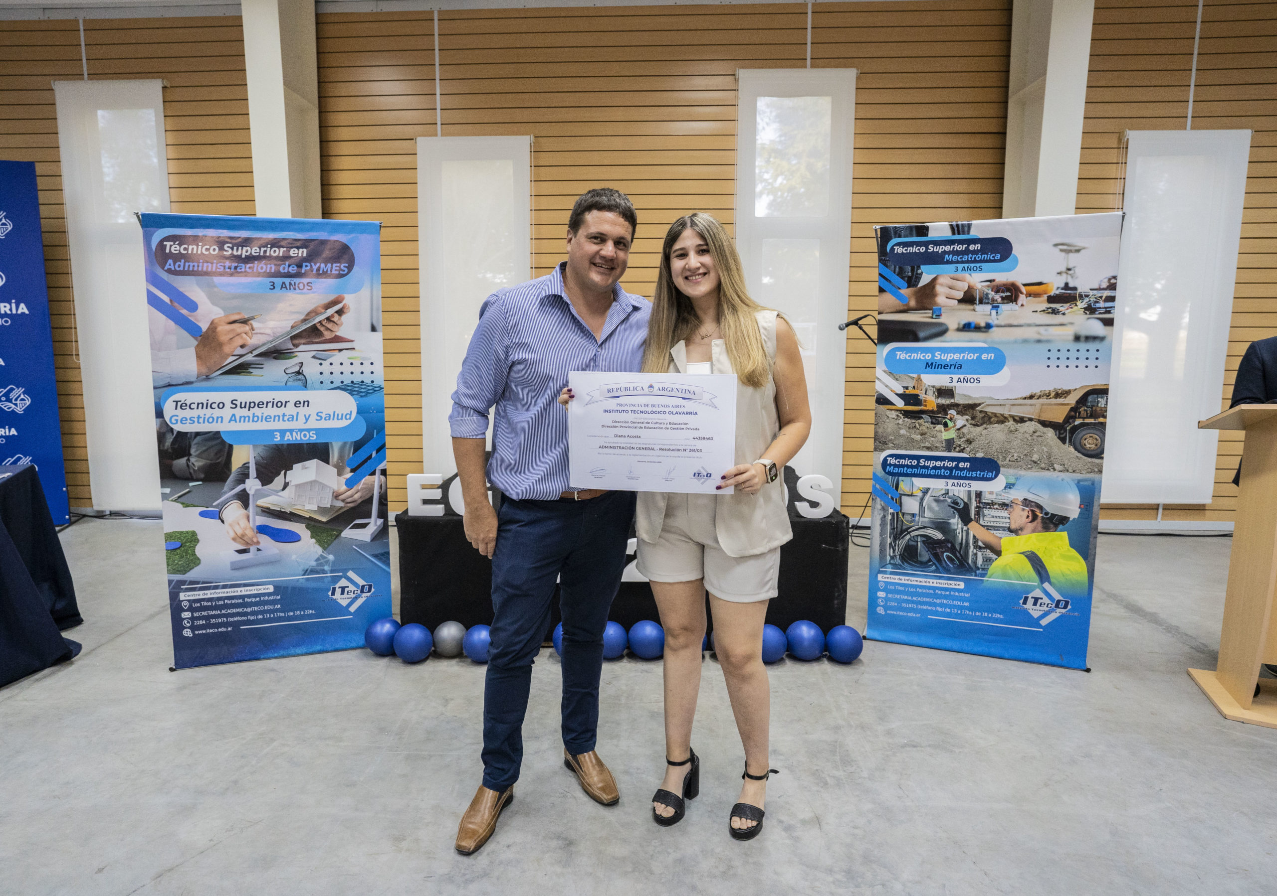 Las palabras de bienvenida, pero también de reconocimiento estuvieron a cargo de Diego Cunioli y Romina Altafini, quienes pusieron en valor la importancia de la formación técnica superior, como herramienta ineludible no solo para el acceso al mundo laboral sino también como factor imprescindible para el desarrollo de nuestro país.