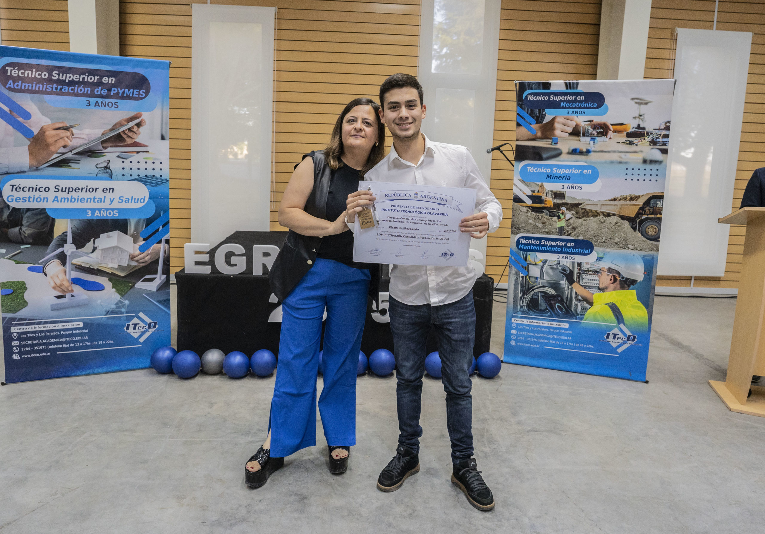Las y los egresados recibieron sus títulos de tecnicatura superior en Minería, Mantenimiento Industrial, Administración de Pymes y en Gestión Ambiental y Salud.