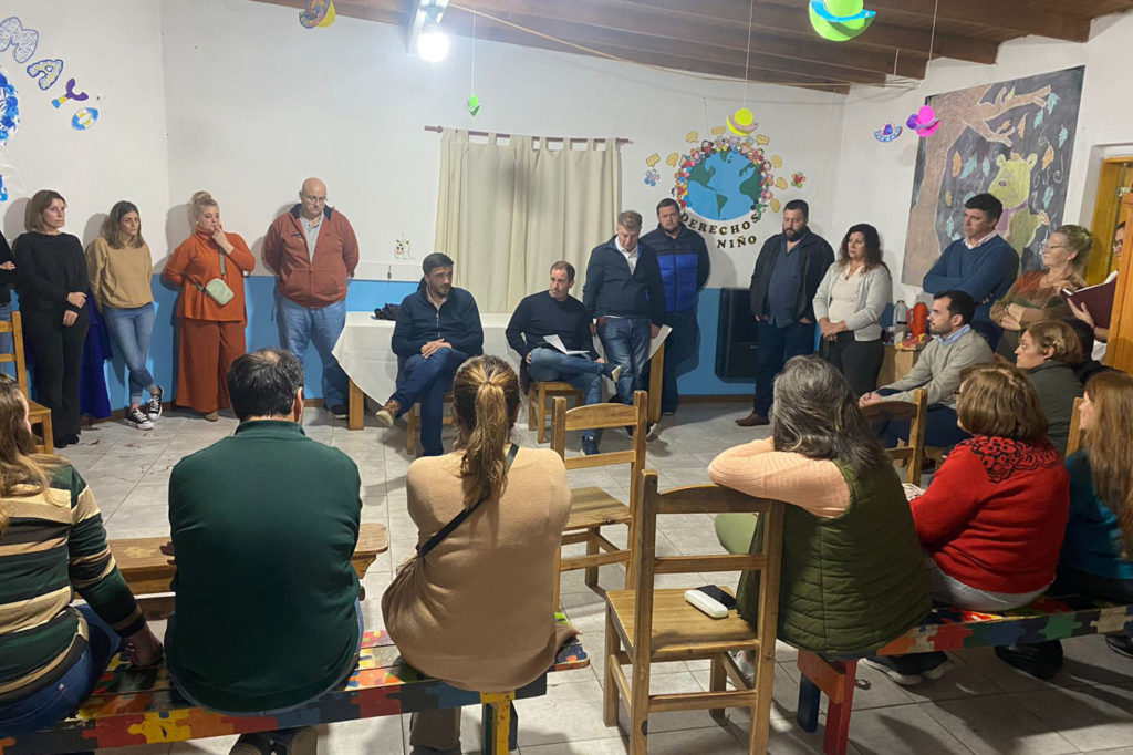 El jefe comunal, que estuvo acompañado por funcionarios de su gabinete, encabezó la reunión junto a la presidenta de la Sociedad de Fomento 10 de Junio Isabel Ríos y el presidente de la Sociedad de fomento “Martín Fierro” Pablo Spaltro.