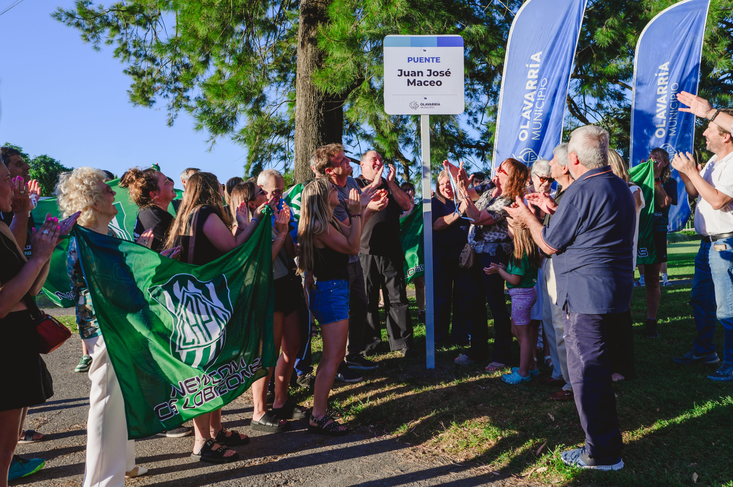 En la tarde del último miércoles se llevó a cabo el acto protocolar en el que se impuso el nombre de “Juan José Maceo” al puente ubicado sobre calle Necochea, que precisamente permite no sólo dar acceso al barrio Pueblo Nuevo, sino también arribar al club homónimo que Maceo supo presidir por años y dejar su legado. El acto contó con la participación del intendente Maximiliano Wesner, dirigentes, referentes e integrantes de la entidad albiverde, como así también funcionarios municipales, concejales y un importante acompañamiento de la comunidad local.