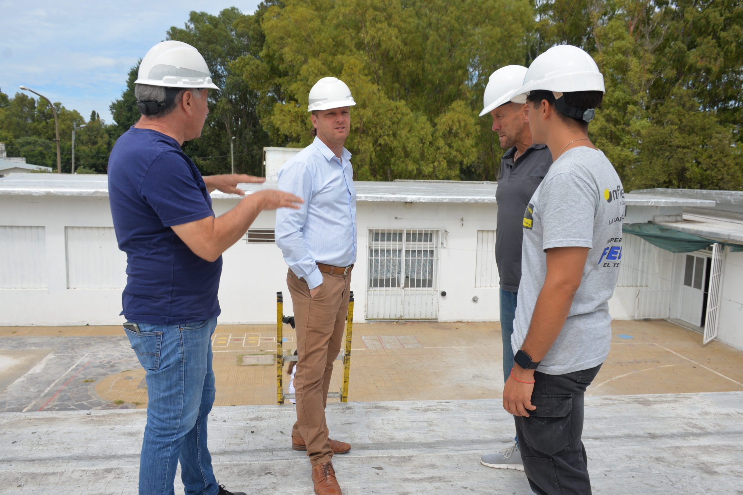 Acompañaron al Intendente el secretario de Obras, Infraestructura y Servicios Públicos Orfel Fariña y demás integrantes del área; junto a referentes de la empresa adjudicataria de la licitación para la concreción de dicha obra. Allí, fueron recibidos por directivos del establecimiento educativo.