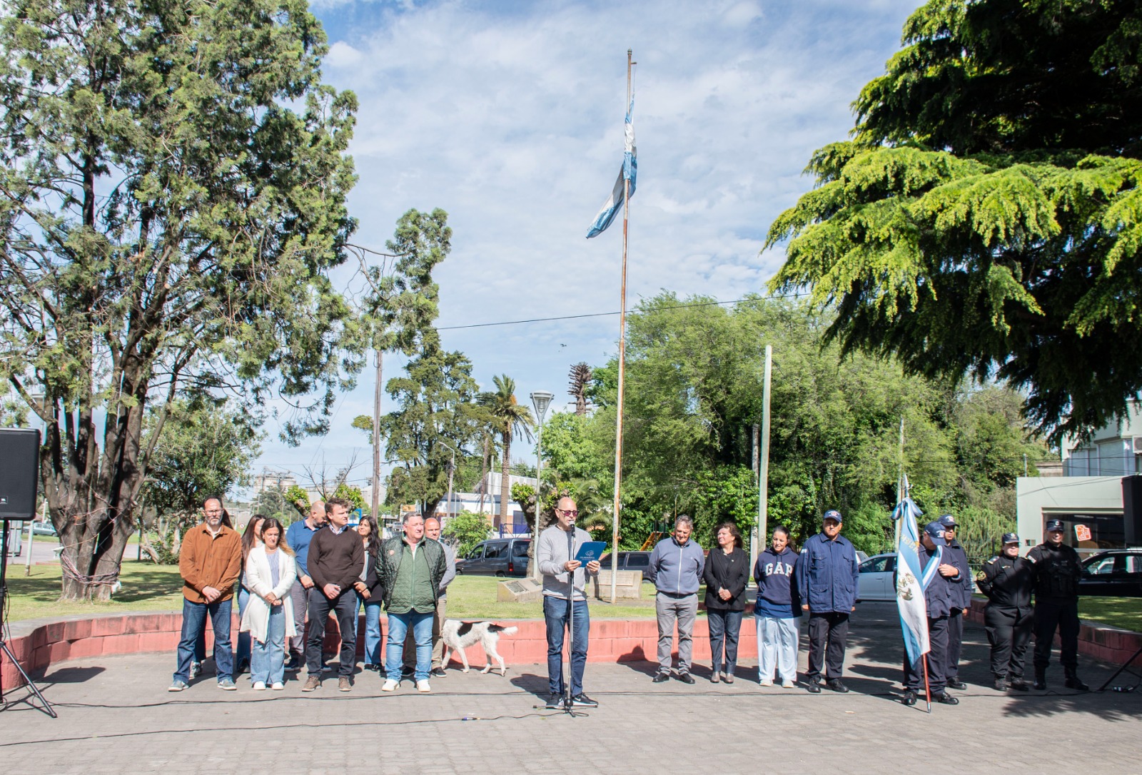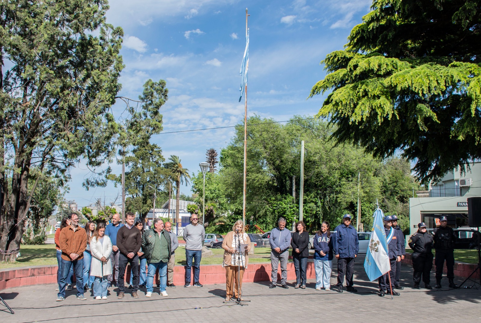 El intendente Maximiliano Wesner, junto a vecinos y vecinas de la comunidad, participó en la mañana de este lunes del acto protocolar por el 146º aniversario de Sierras Bayas, que se llevó a cabo en la Plaza 17 de Octubre.