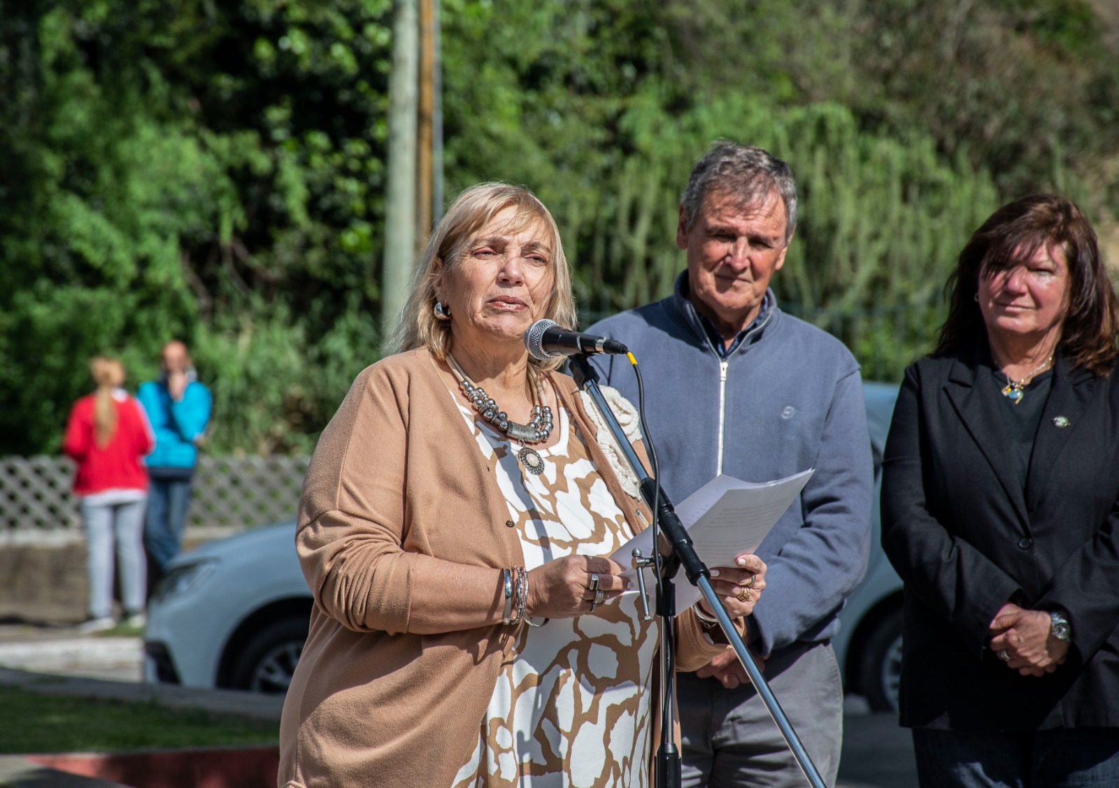 Previamente Patricia Patricia Dietrich, docente de la escuelas Primaria 14 y Media Nº 2 e integrante del Rotary del distrito 4921, manifestó con orgullo que “Sierras Bayas nació del esfuerzo, se forjó con las manos callosas y el corazón valiente de aquellos inmigrantes checoslovacos, italianos, polacos, españoles que vinieron en busca de un futuro mejor. Ellos trajeron consigo no solo sus costumbres, sus lenguas, sus tradiciones, sino también el valor del trabajo, la cultura del esfuerzo, la esperanza de una vida digna. Fue aquí, entre las piedras y los cerros donde encontraron ese porvenir. Y fue allí donde sembraron la semilla de una comunidad empujante, trabajadora y solidaria”.