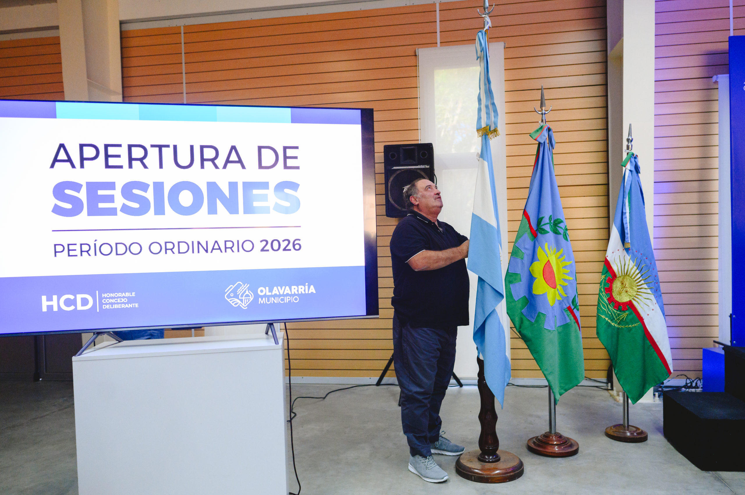 La actividad se inició minutos después de las 18, en la que el jefe comunal estuvo acompañado por el presidente del Concejo Deliberante, Guillermo Santellán. La sesión se inició con el izamiento de la bandera nacional, que fue realizado por José Maceo, presidente del Club Pueblo Nuevo y referente de la Unión de Clubes.