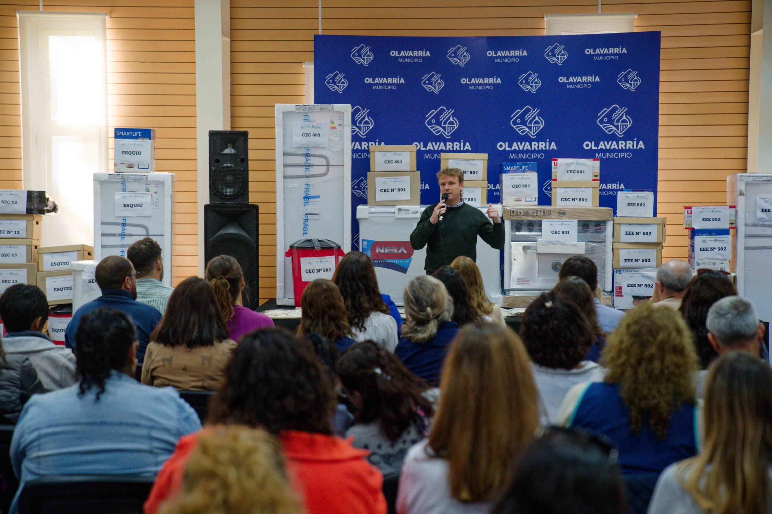 La entrega alcanzó a 92 instituciones de Olavarría, entre las que se encuentran Jardines de Infantes, Escuelas Primarias y Secundarias, Escuelas de Modalidad Especial y Centros Complementarios Educativos. Se trató de cocinas de 6 hornallas, semi industriales y familiares; hornos pizzeros y termotanques, Heladeras con freezer y freezers, batidoras planetarias, licuadoras, procesadoras y minipimers.