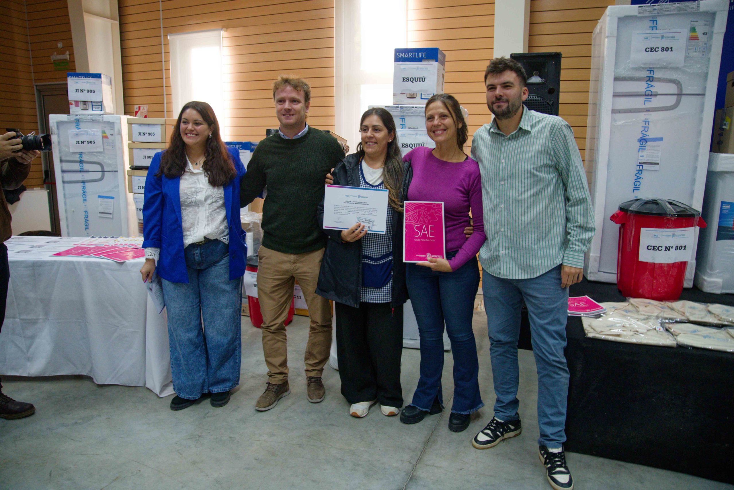 En la mañana de este jueves instituciones educativas locales recibieron importantes y variados equipamientos que serán destinados para fortalecer el servicio alimentarios que brindan a chicos y chicas de distintos puntos del Partido. Fue en el marco de un acto que se desarrolló en el Centro de Convenciones Municipal, encabezado por el intendente Maximiliano Wesner y el Director Provincial de Servicio Alimentario Escolar Juan Pablo Sorrentino. Estuvieron presentes además funcionarios provinciales, municipales, autoridades educativas y personal docente y directivo de numerosas instituciones.