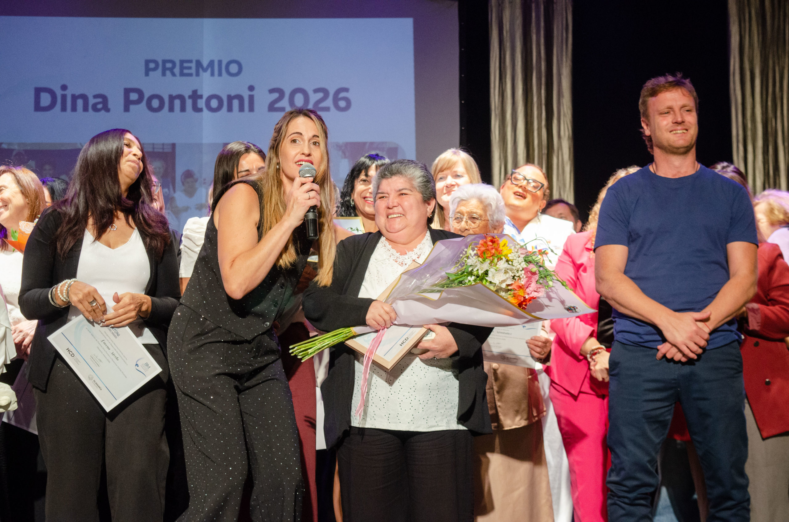 La ceremonia inició con un espectáculo de tango a cargo del Ensamble de mujeres “8 M”, una formación artística conformada especialmente para esta ocasión. Posteriormente se dio paso a la entrega de reconocimientos, cuya distinción principal, el Premio Dina Pontoni 2026, fue para Elena Aurora Riveros.