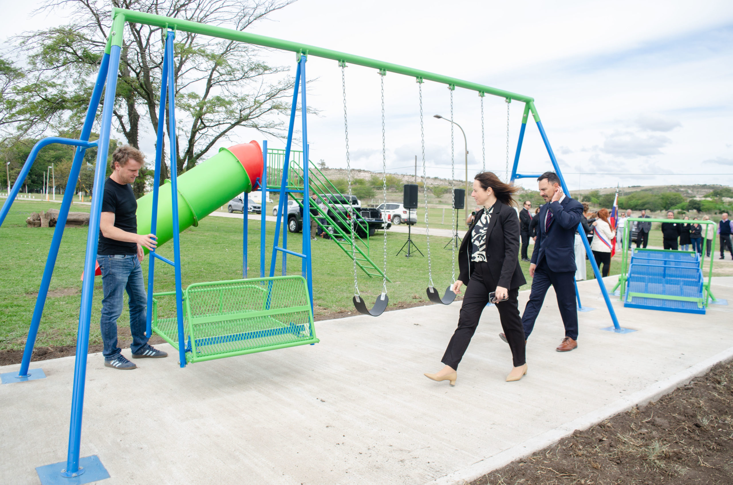 Posteriormente, se dirigieron al Cerro Luciano Fortabat de Loma Negra, donde se llevó a cabo la presentación e inauguración formal de un espacio de juegos adaptados para personas con discapacidad que fueron gestionados desde Kamen. Vale destacar que se ubican en la misma plaza donde días atrás el Municipio concluyó la instalación de juegos para la realización de ejercicios, en un abordaje que contempla localidades serranas y rurales de todo el Partido.