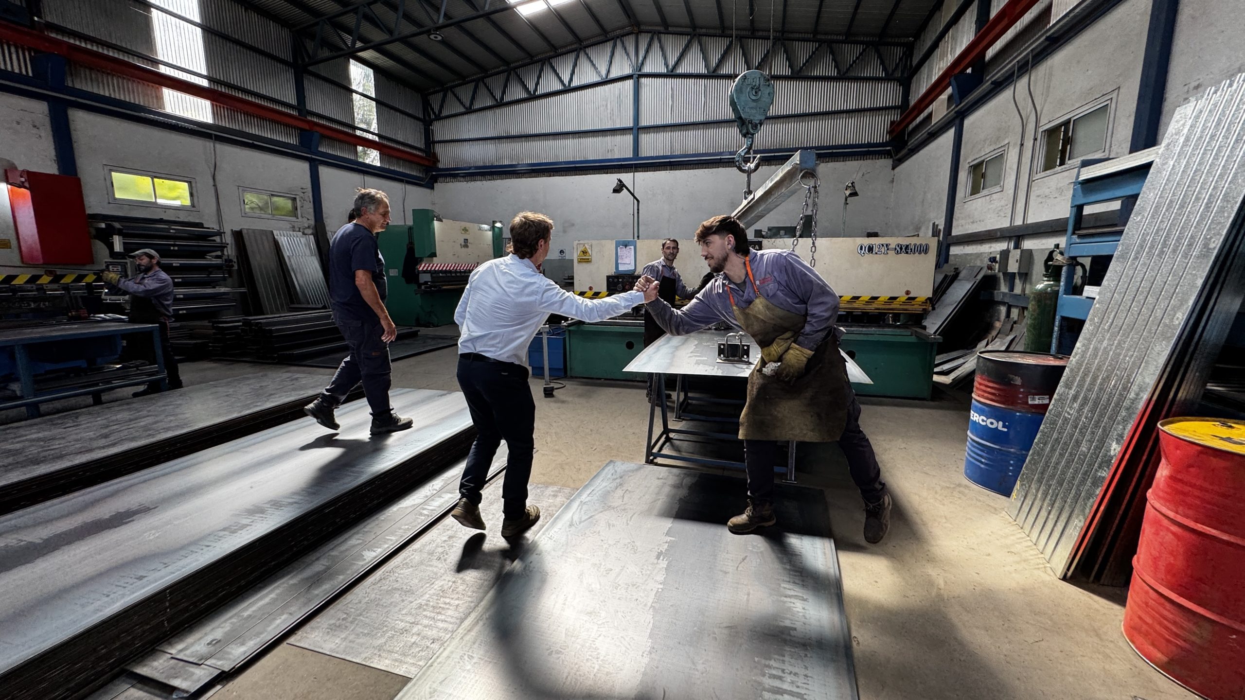 Narraron cómo fue el inicio de la historia de la firma, en el año 1983, pero cómo fue el desarrollo de la misma, de los primeros trabajos que consistían en rejas, portones y cómo en la actualidad desarrollan de manera íntegra la producción de acoplados, desde el ingreso de la materia hasta la salida del producto finalizado. Todo el proceso productivo se lleva a cabo en la planta ubicada en Colonia Hinojo, que hoy en día además brinda trabajo a más de 40 personas.