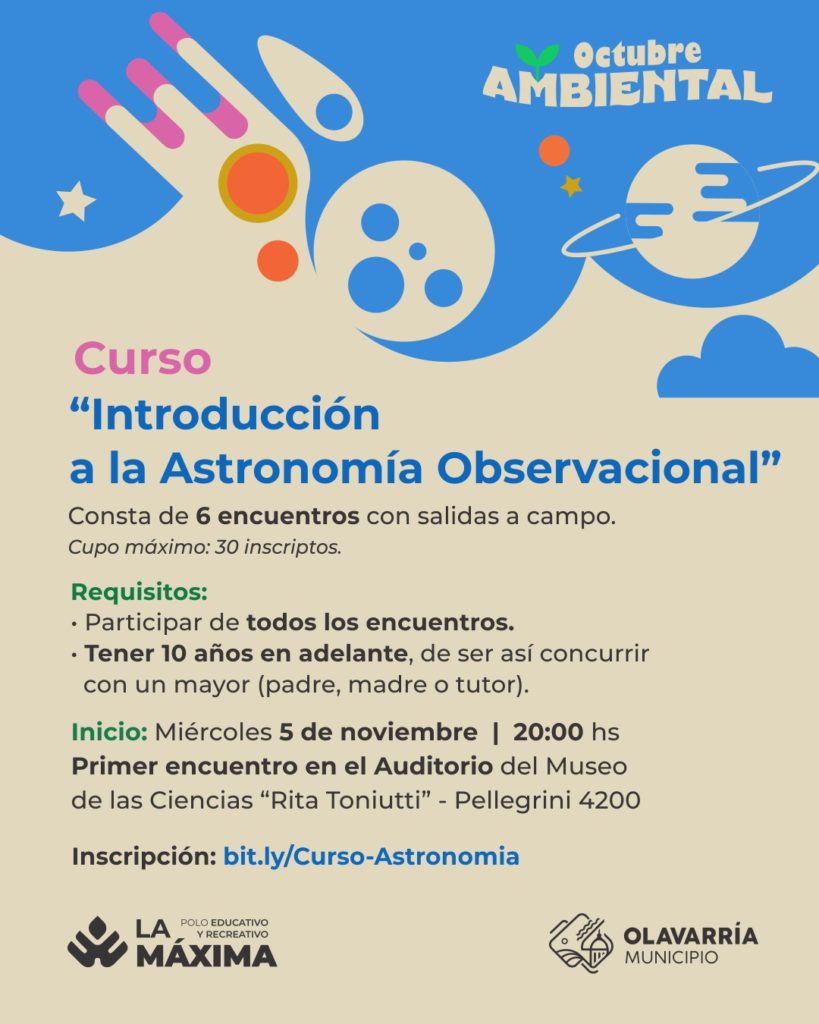 El Municipio de Olavarría, informa que en el marco de las propuestas del Polo Educativo y Recreativo “La Máxima”, el Museo de las Ciencias “Ing. Rita Toniutti será sede del Curso de Introducción a la Astronomía Observacional.