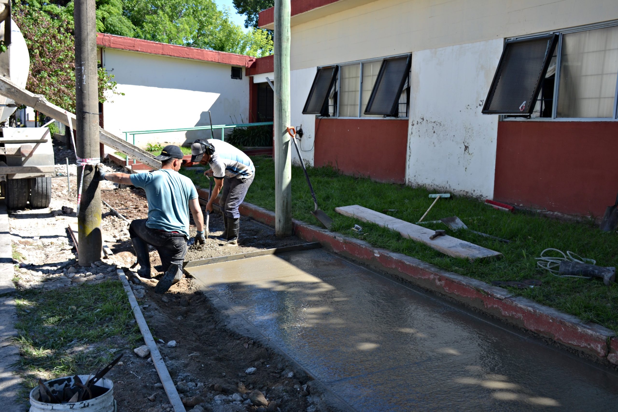 En la Escuela Nº 502 se iniciaron las tareas de reemplazo de veredas en una extensión total de 80 metros cuadrados, para brindar mejores condiciones de accesibilidad.