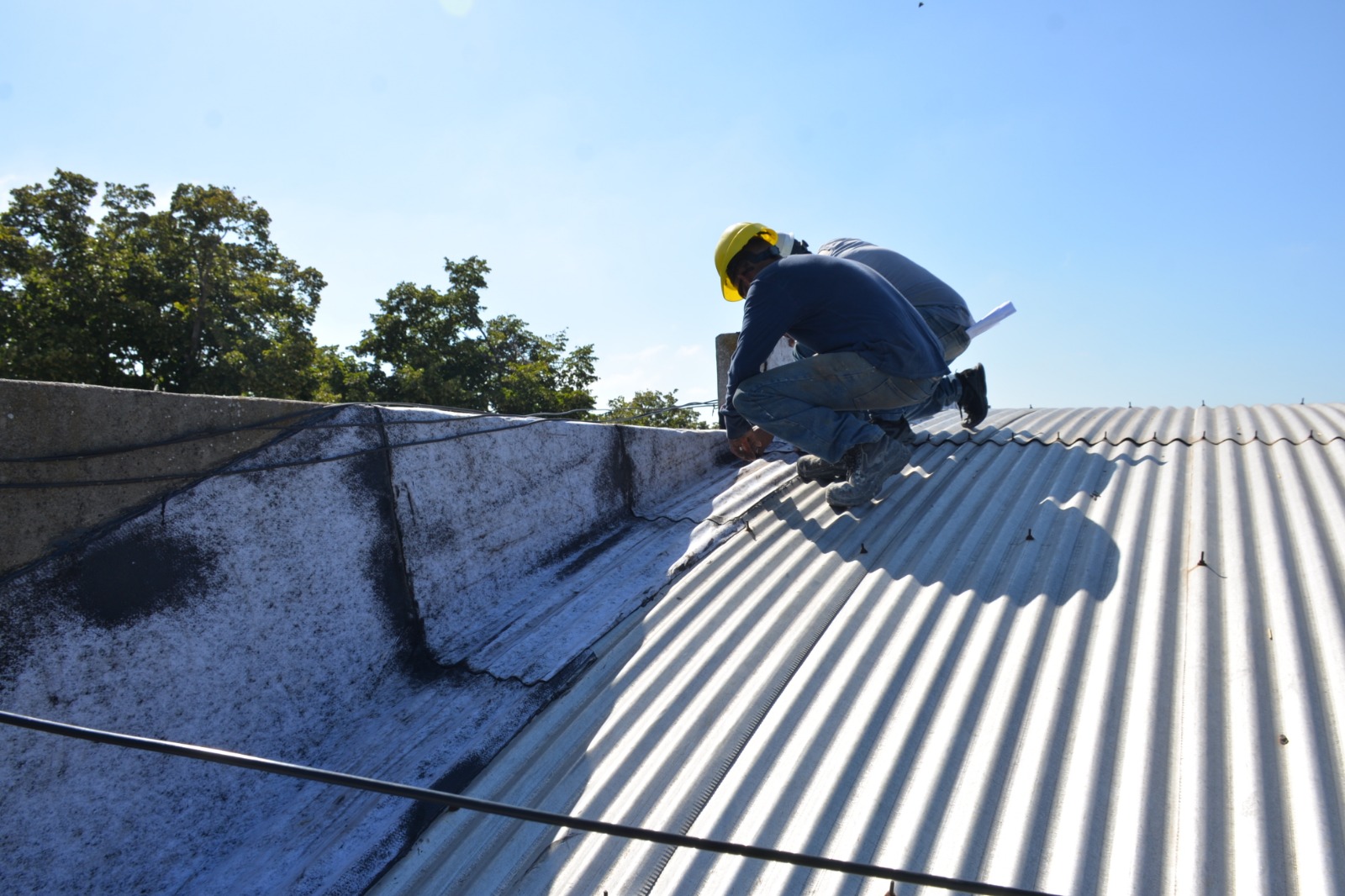 La intervención se realiza en el techo de dicha edificación, la búsqueda es evitar las filtraciones hacia el interior. En el edificio hay techos de chapa, recubiertos con membrana en mal estado y desagües deficientes que producen filtraciones. Para la materialización de los trabajos se debe retirar toda la membrana existente. Luego de retirada la membrana se continúa con el pintado de la totalidad del techo con bitumen asfaltico. Una vez pintada toda la superficie y las cargas se prosigue con la colocación de la nueva membrana. En los techos de chapa se debe realizar la impermeabilización de las cargas completas. Se cubre la cara lateral hacia el techo y la cara superior completa con rebajes en algunos casos. Las cargas se deben tratar con membrana con geotextil. La membrana sobre las chapas pintadas con bitumen debe ser de tipo emacober con gofrado de aluminio. La membrana que se colocará representa aproximadamente 200 metros cuadrados. Se reparan las bajantes y canaletas existentes. Se reubica el caño de alimentación de agua de los baños. Inversión total más de 6.600.000 pesos.