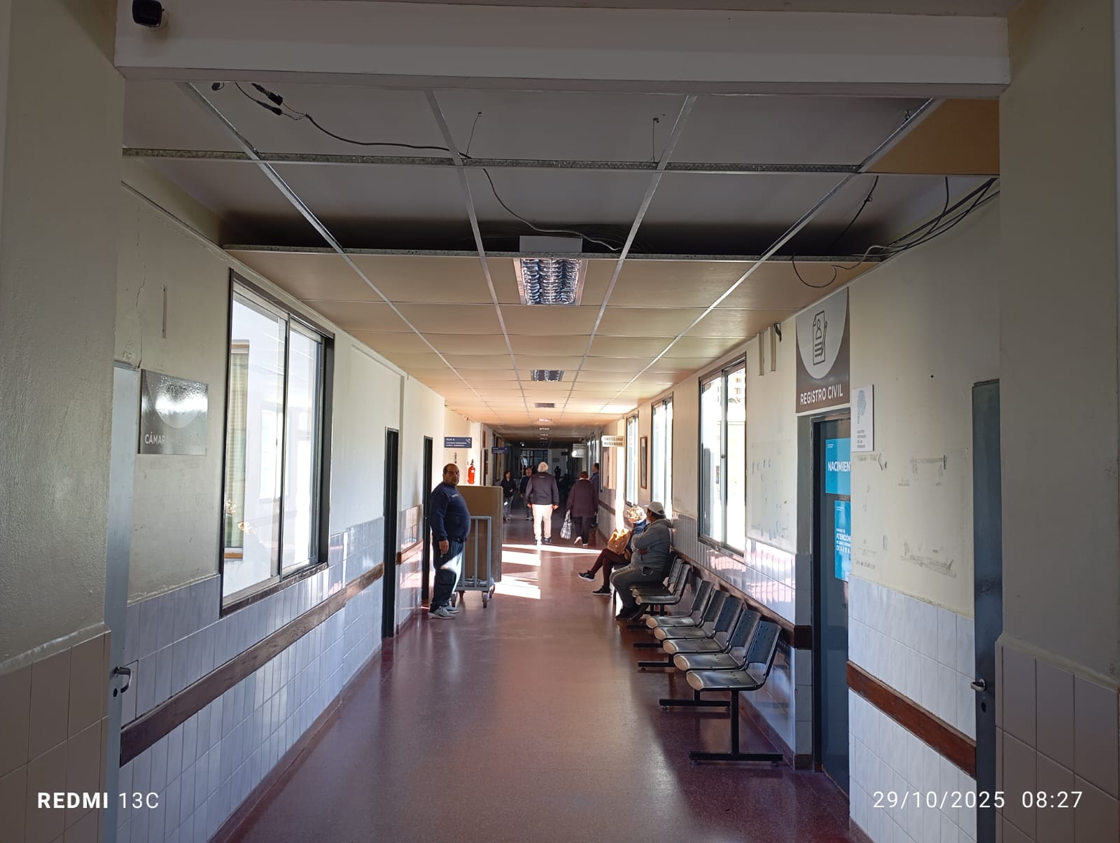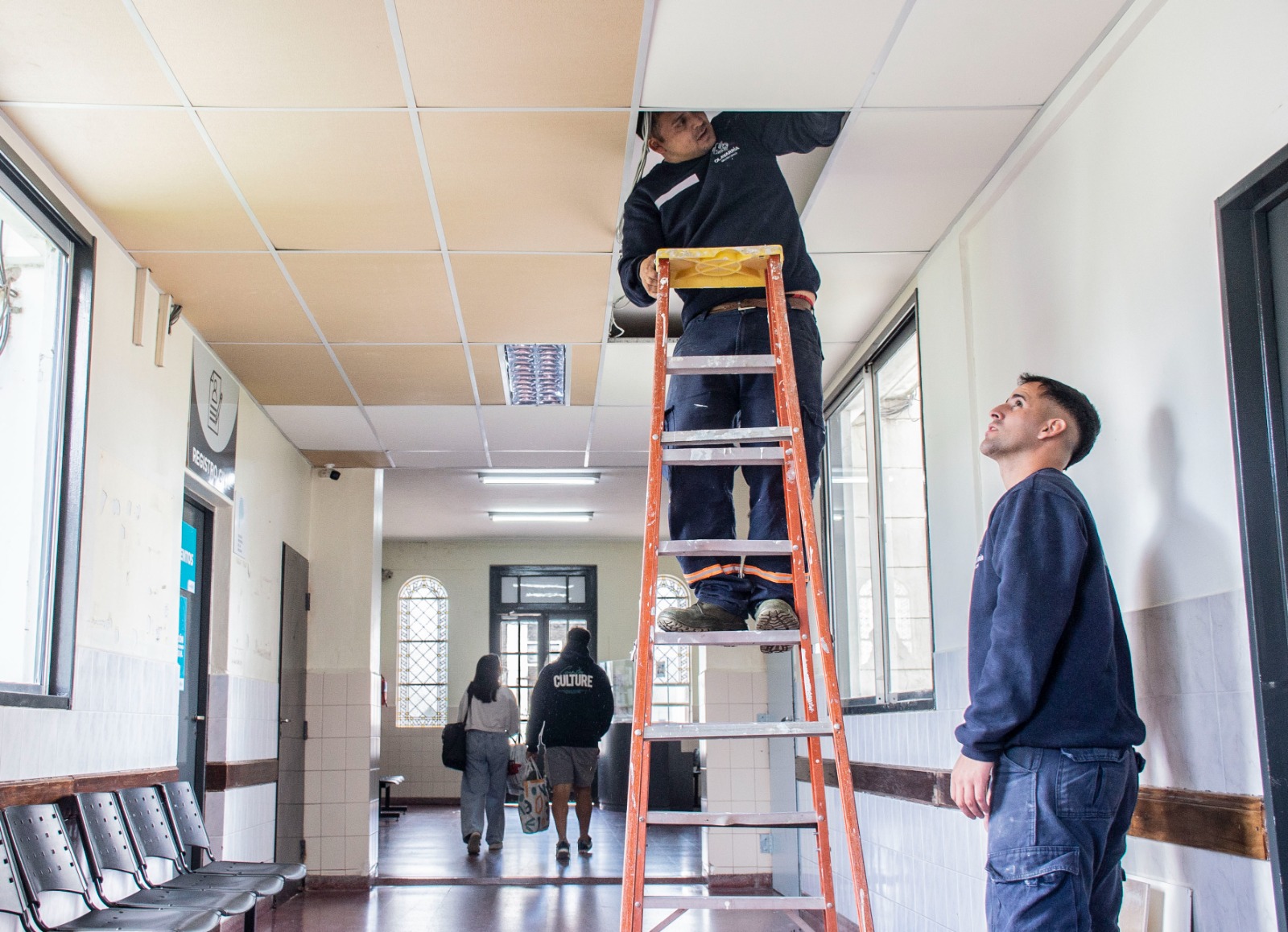 Asimismo, los trabajos sobre el ingreso por Rivadavia también pueden verse en el cielorraso que conduce ese pasillo principal, donde se llevó a cabo el recambio y pintado de placas, la instalación de nueva iluminación sectorizada, además de térmicas y disyuntores, lo que permite evitar sobrecargas y, por ende, preservar la instalación.