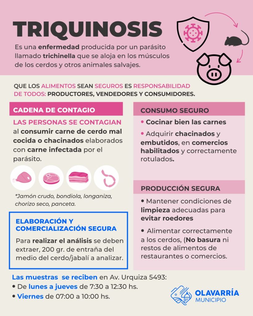 El Municipio de Olavarría, a través de la Dirección Veterinaria, refuerza la información para la prevención y control de la triquinosis, una enfermedad parasitaria causada por las larvas y parásitos adultos del género Trichinella spp que afecta al ser humano, mamíferos domésticos y silvestres, aves y reptiles.