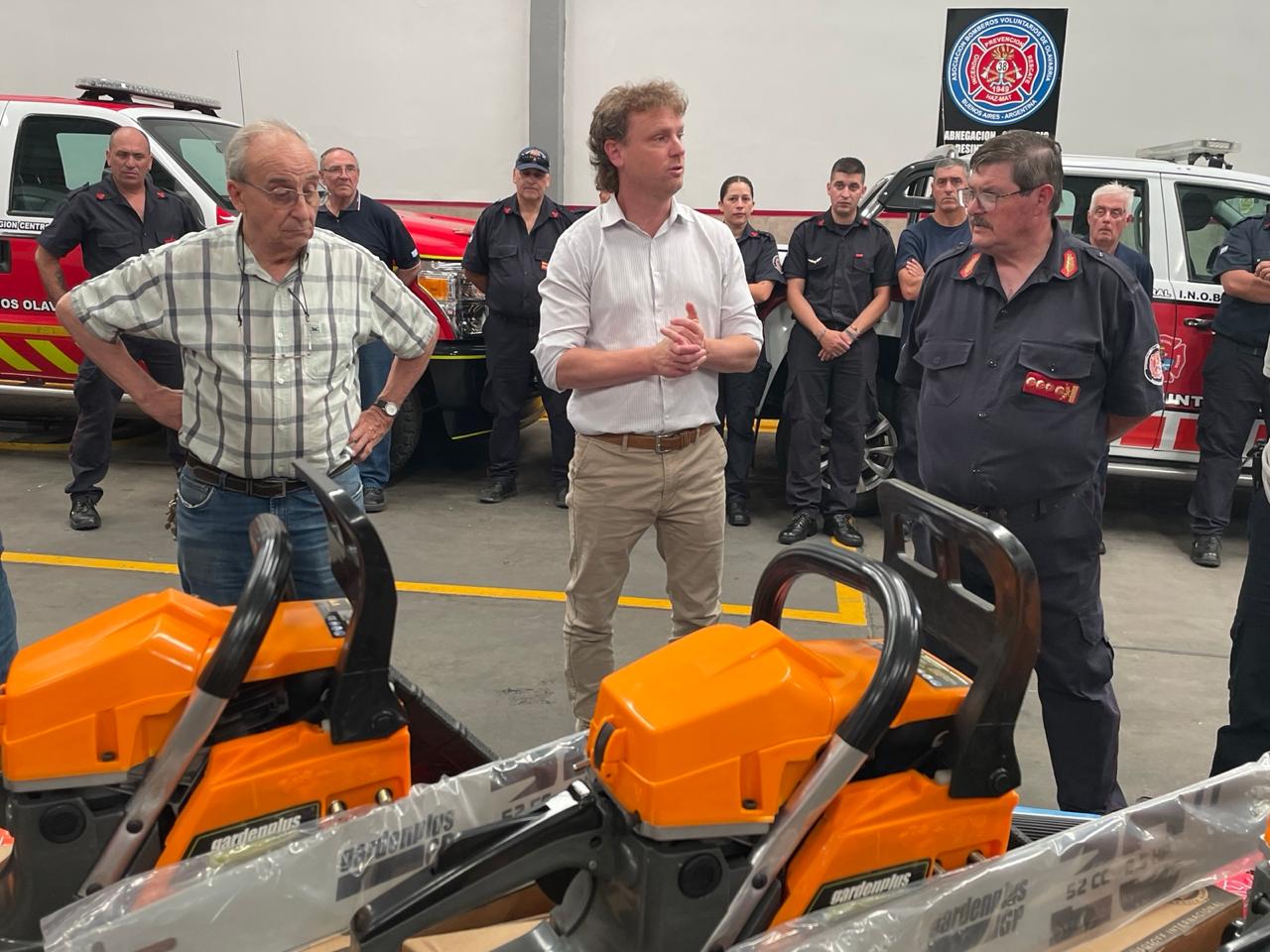 En la mañana de este martes el Municipio de Olavarría llevó a cabo una entrega de importante equipamiento y herramientas a Bomberos Voluntarios y Defensa Civil, actividad que se concretó en el Cuartel Central local y que se enmarcó en el fortalecimiento para la capacidad de respuesta ante emergencias climáticas. Concurrió el intendente Maximiliano Wesner, quien fue recibido por el presidente de la Asociación de Bomberos Voluntarios Hugo Fayanás y el 2° Jefe del Cuerpo Activo, el comandante general Marcelo Menchaca. Estuvieron presentes, además, integrantes del cuerpo activo y referentes de la asociación.