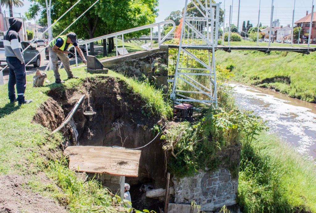 Precisamente se trabaja sobre calle Capitán de Corbeta Diego M. Wagner, teniendo en cuenta que el mal funcionamiento del conducto fue socavando lentamente la base de fundición del puente.