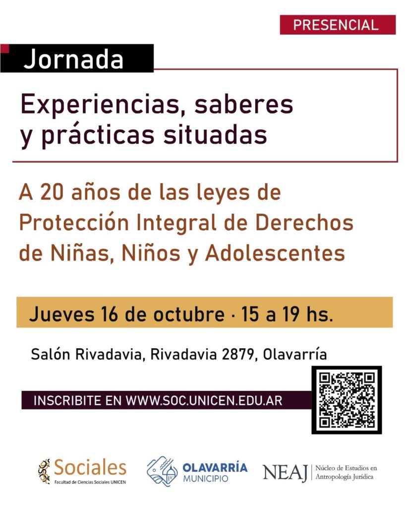 El Municipio de Olavarría y la Universidad Nacional del Centro de la Provincia de Buenos Aires (Unicen) invitan a participar de la jornada “A 20 años de las Leyes de Protección Integral de Derechos de Niñas, Niños y Adolescentes. Experiencias, saberes y prácticas situadas”, que se llevará a cabo este jueves, desde las 15 horas, en el Salón Rivadavia. Personas interesadas deberán anotarse a través del formulario online disponible en el sitio web de la Facultad de Ciencias Sociales.