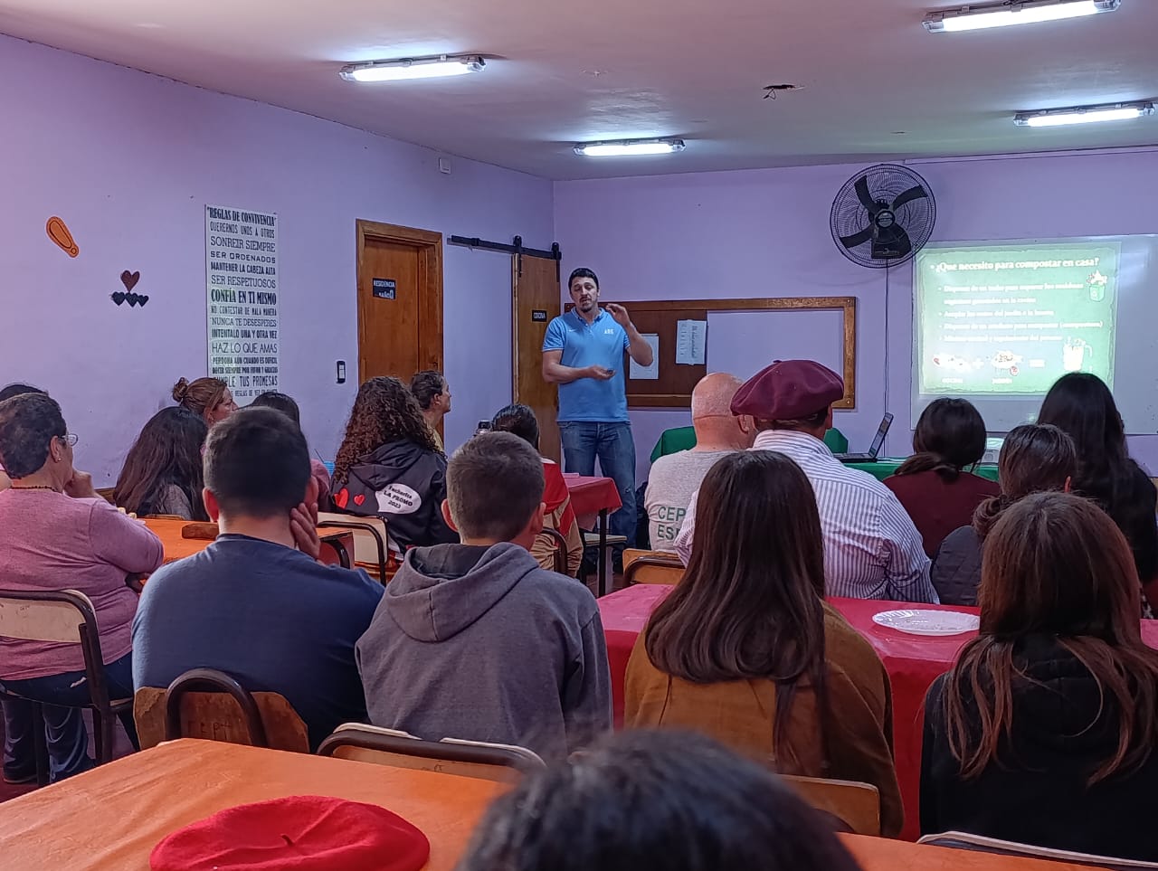 La jornada fue organizada desde la Secretaría de Desarrollo Económico y Productivo y consistió en la realización de dos talleres, uno de compostaje a cargo de personal del área de Ambiente y otro de huerta a cargo de personal de la Dirección de Desarrollo Agropecuario.