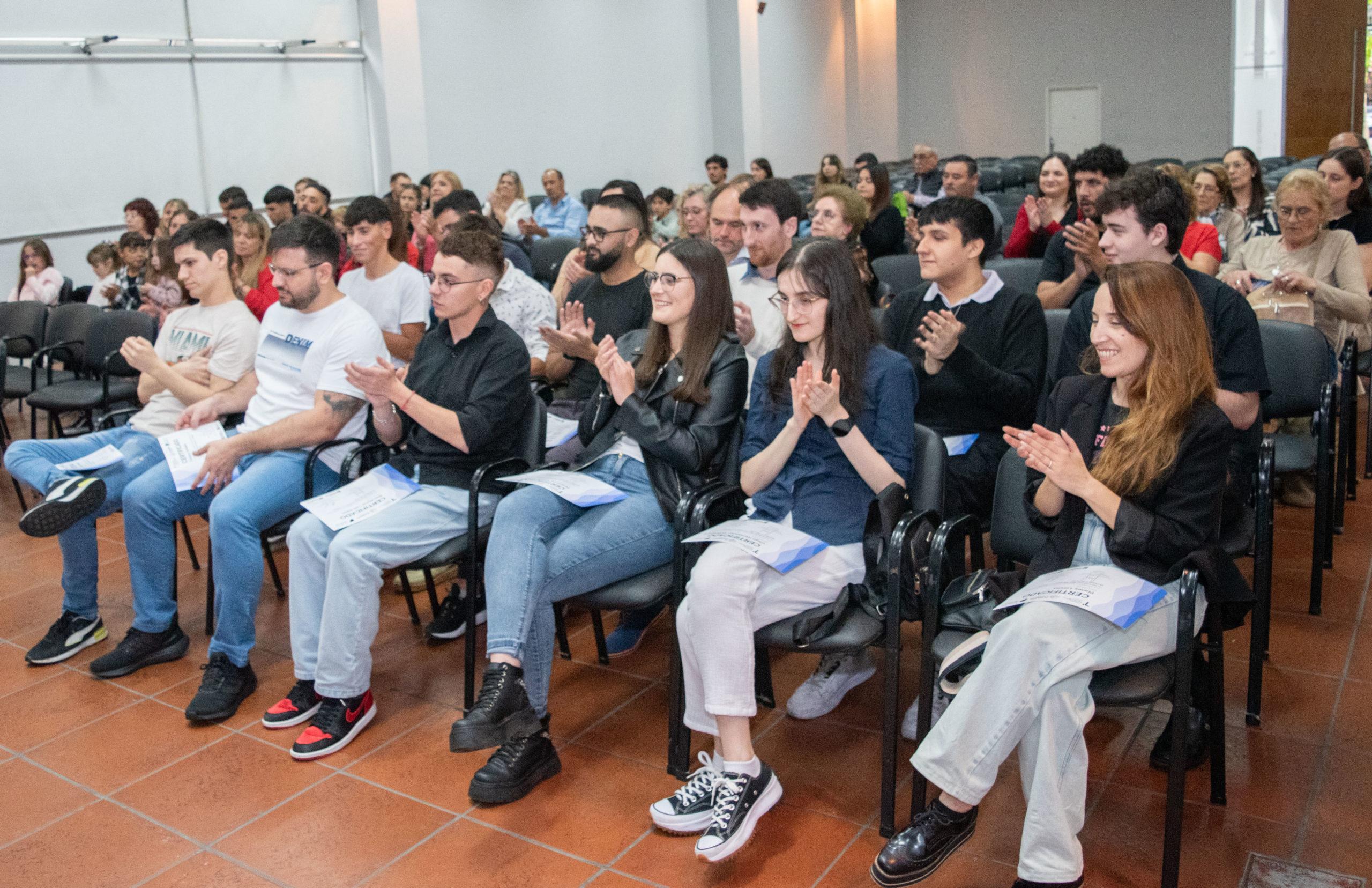 El evento incluyó la proyección de un video sobre la industria del conocimiento en nuestro país, tras lo cual se dio paso a las palabras alusivas, a cargo de Belén Santellán y Gastón Sarachu. Al respecto, Sarachu resaltó: “Esto no hubiera sido posible si no hubiese sido por la articulación de varios actores. Este año hemos celebrado un convenio donde tenemos, por suerte, muchísimos estudiantes que el año siguiente seguramente serán los próximos egresados, son más de 200 los inscriptos de la cohorte 2024. La verdad que estamos muy contentos”.