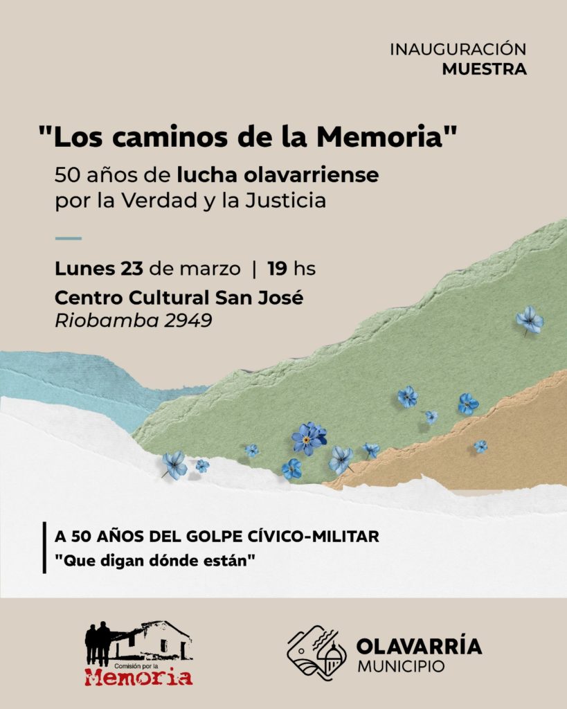 En el marco de las actividades con motivo de cumplirse cinco décadas del inicio de la última dictadura cívico militar, se invita a toda la comunidad a participar de la inauguración de la muestra  “Los caminos de la Memoria: 50 años de lucha olavarriense por la verdad y la justicia”.