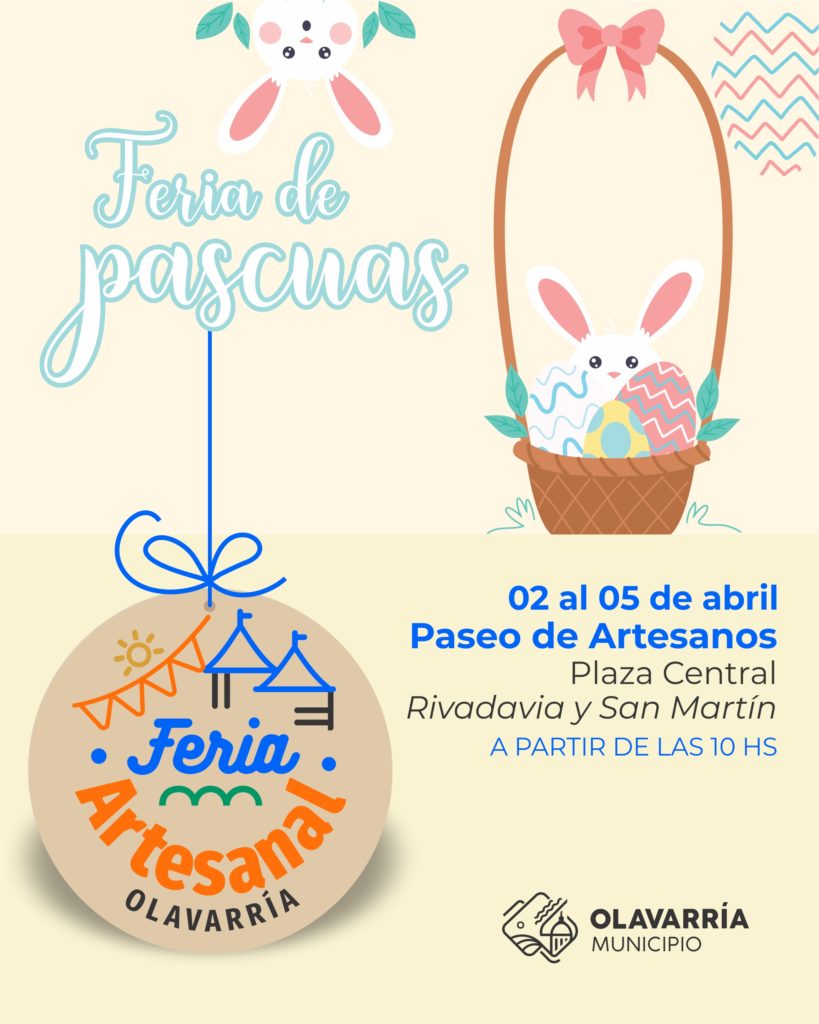 En el marco de las Pascuas, el Municipio de Olavarría invita a participar de una nueva edición de la “Feria Artesanal Olavarría” en el Paseo de los Artesanos, que se encuentra instalado en la Plaza Central “Coronel Olavarría”.