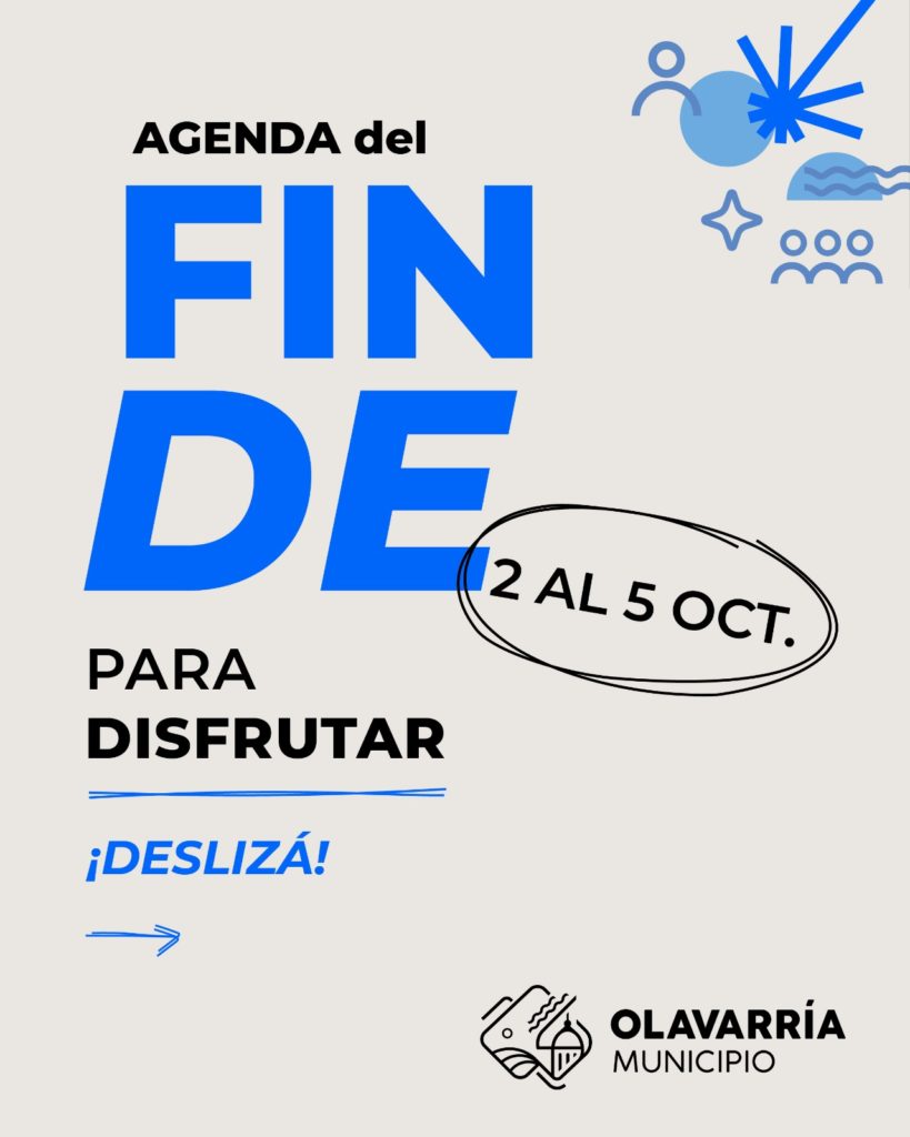 El Municipio de Olavarría invita a disfrutar de las diferentes propuestas culturales, recreativas y deportivas, que se desarrollarán desde este jueves 2 hasta el domingo 5 de octubre.