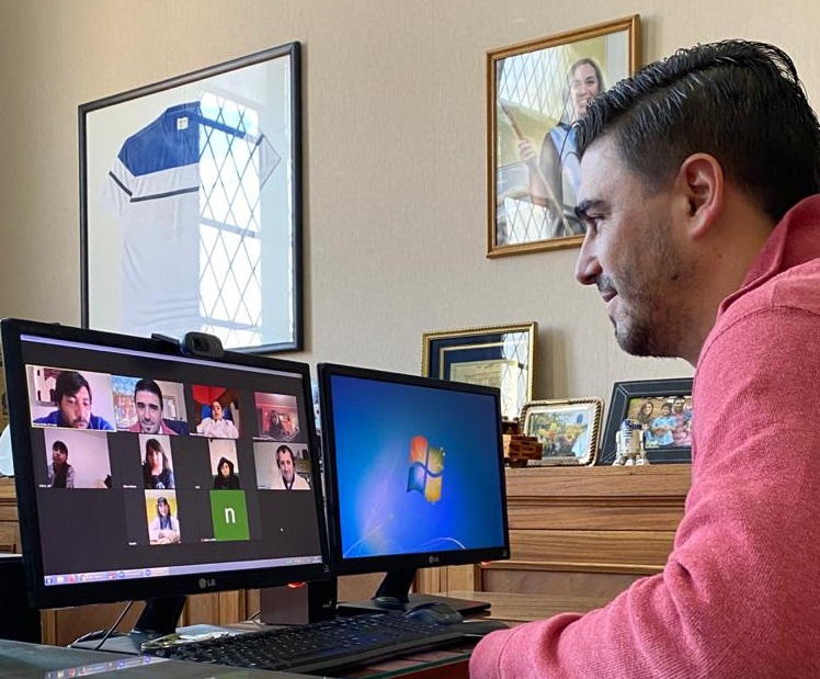 El intendente municipal Ezequiel Galli participó en la tarde de este jueves de una reunión por Zoom con alumnos de sexto año de la Escuela Primaria N° 52.