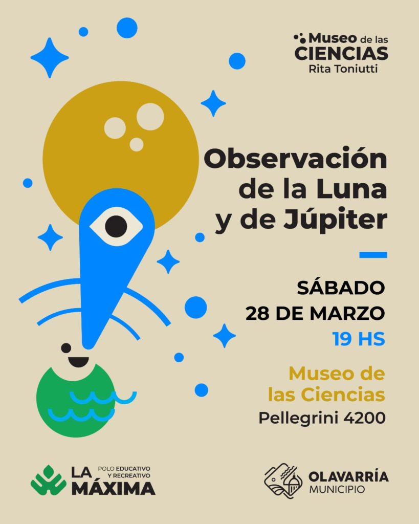En el marco de las propuestas del Polo Educativo y Recreativo “La Máxima”, este sábado 28 de marzo se realizará una Jornada de Observación de la Luna y del planeta Júpiter.
