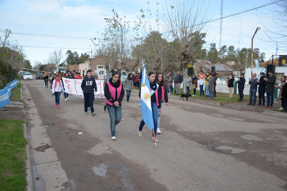 Seguidamente, los alumnos de cuarto grado de la Escuela N° 30 realizaron la promesa a la Bandera. La actividad continuó en la calle principal, frente al Club, con la realización de un desfile, del que participaron el Jardín de Infantes N° 909, la Escuela N° 30, la Secundaria N° 15, el CEPT N° 8  y otras instituciones de la localidad, como así también Bomberos del destacamento de Olavarría y el Escuadrón de Tanques II a pie.