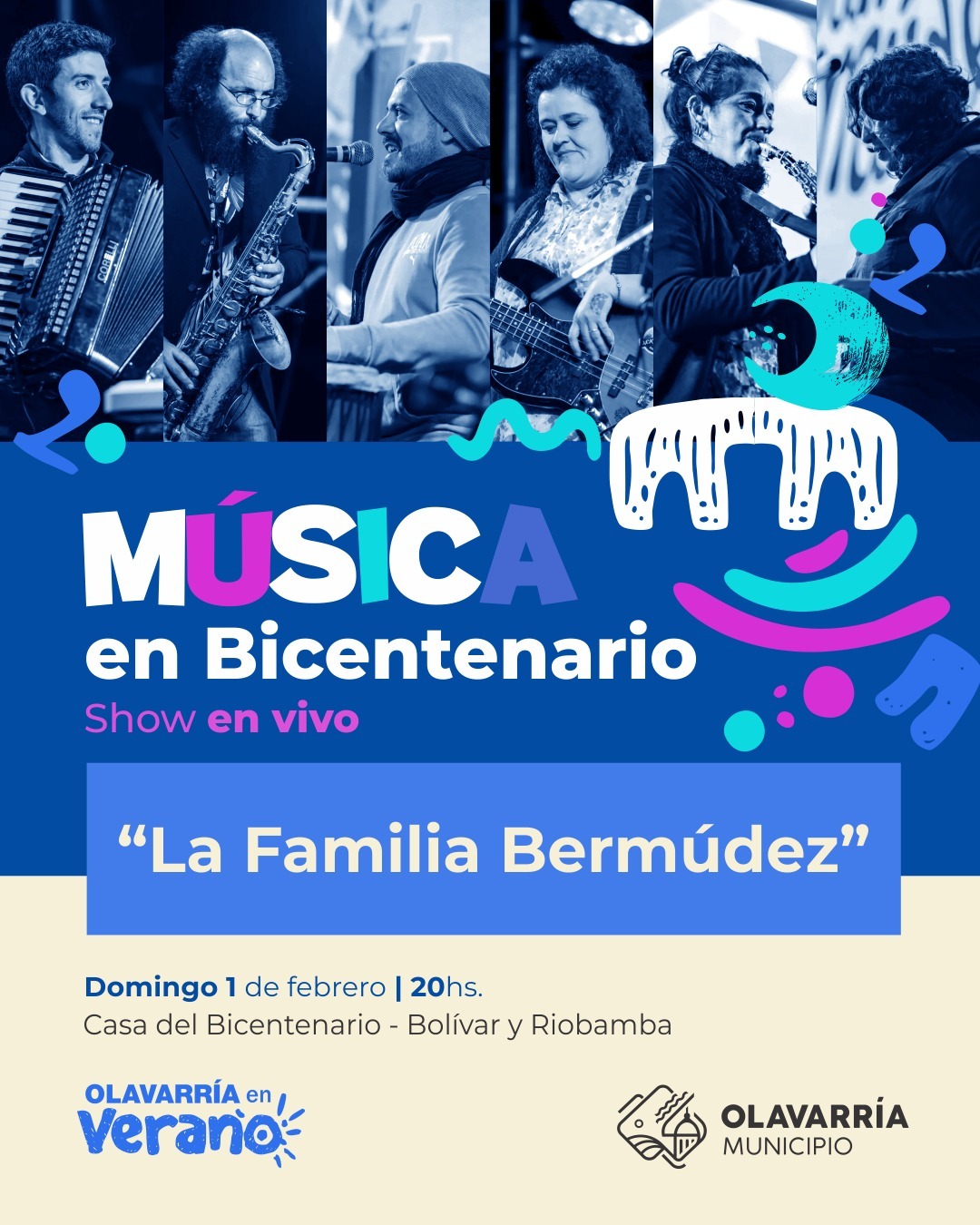 Una de las imperdibles propuestas enmarcadas en el programa municipal “Olavarría en verano” es “Música en Bicentenario”; iniciativa que resultó un éxito de convocatoria y que este domingo 1° de febrero llega a su edición final, con un cierre a puro baile al ritmo de “La Familia Bermúdez”.
