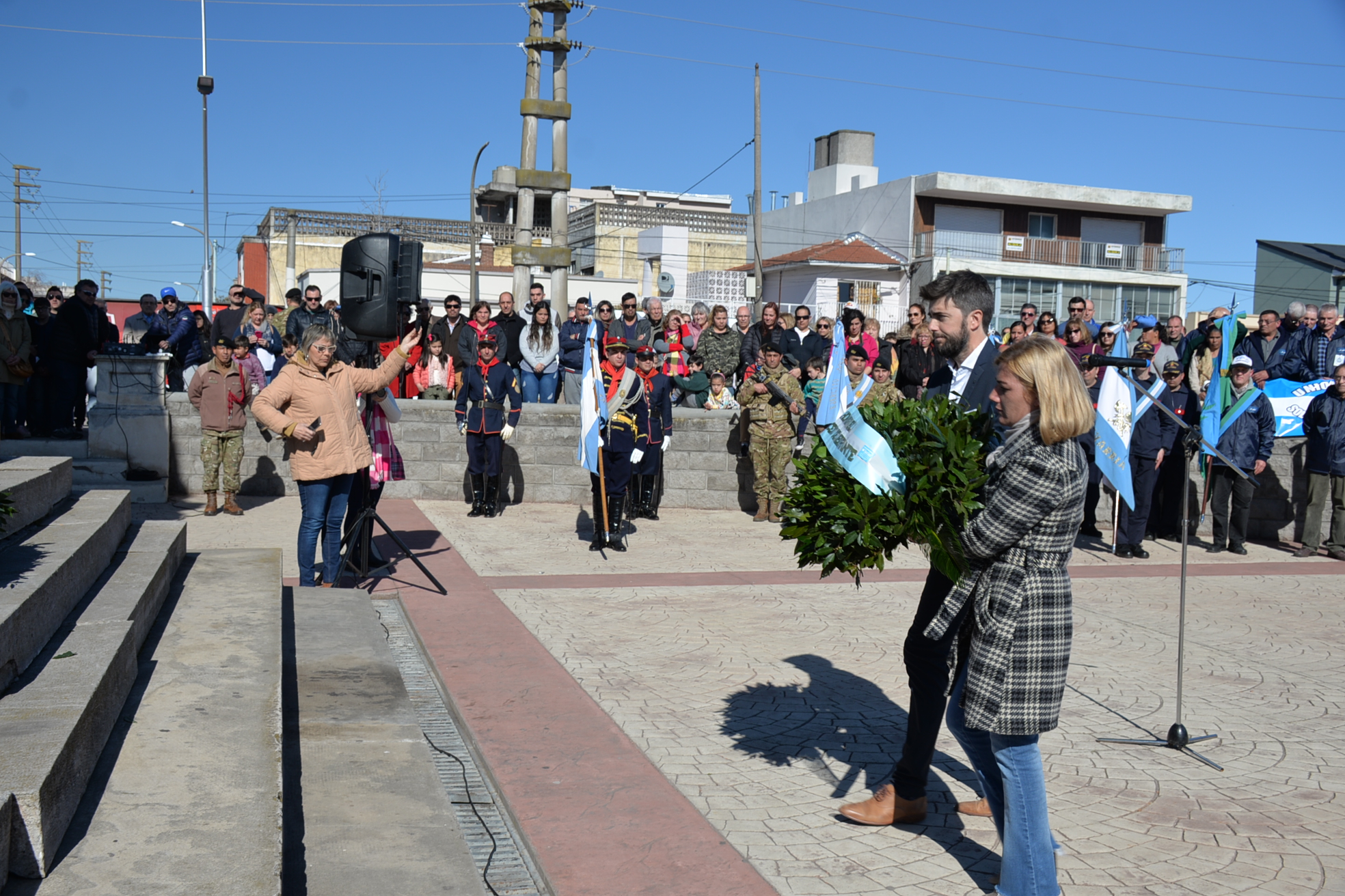 Seguidamente el intendente Ezequiel Galli y la subsecretaria de Desarrollo Social Silvana Rosales colocaron una palma al pie del monumento a San Martín. Lo propio hicieron el Tcnl. Ángel Octavio Peluffo y el Capitán José Flores Castañeda (Guarnición Ejército Olavarría), el presidente del HCD Bruno Cenizo y la presidenta del Consejo Escolar Maite Salerno (Honorable Concejo Deliberante), Héctor Hoyos, Juan Carlos Lopez y Susana Dieterle (Asociación Cultural Sanmartiniana) y Néstor y Carlos (Agrupación Veteranos de Guerra “2 de abril”).
