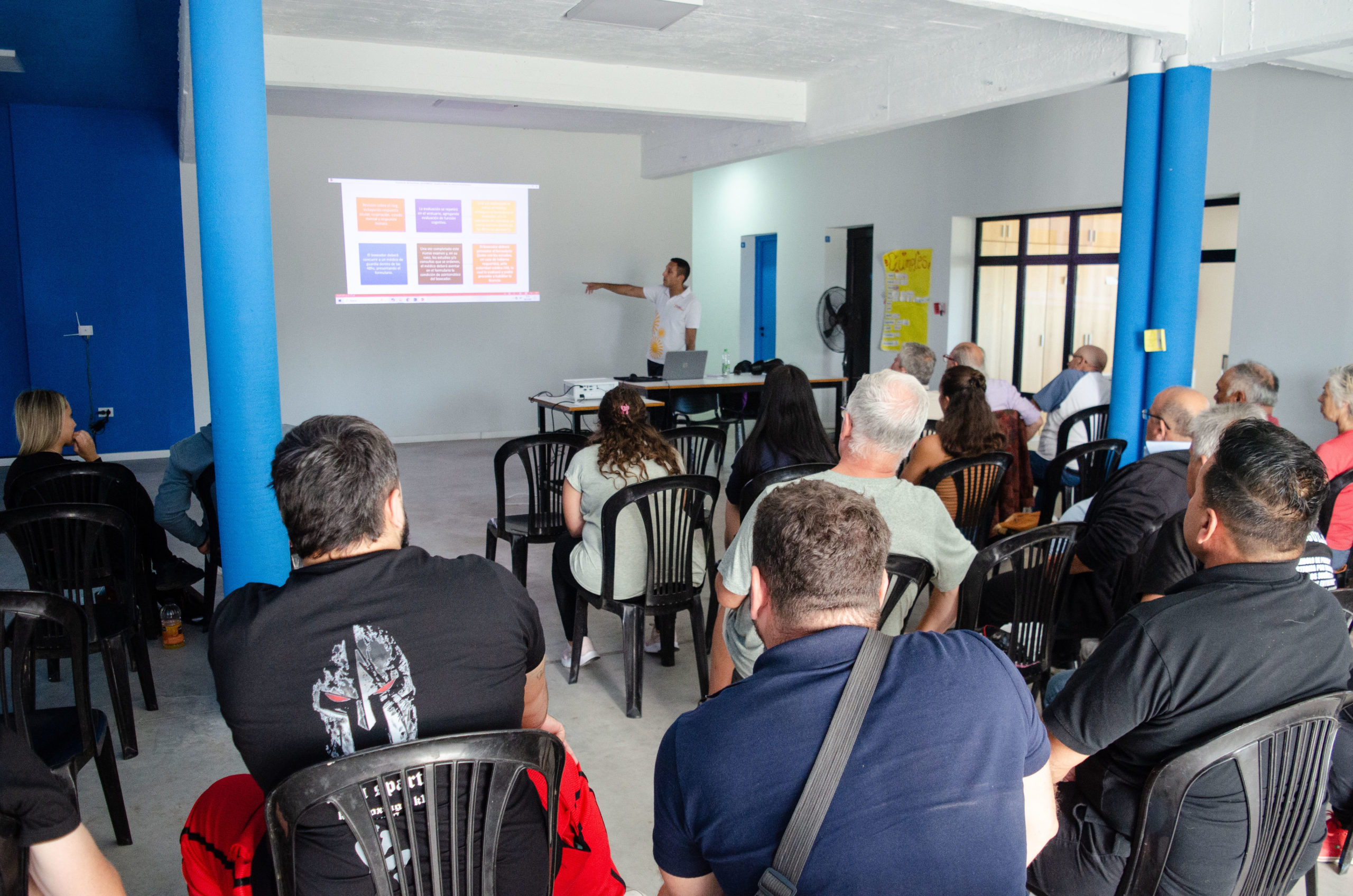 El “Nuevo reglamento de boxeo”, fue la temática que convocó un importante número de concurrentes, atraídos también por la presencia de Manuel Villariño, integrante de la comisión de boxeo profesional de la FAB, quien estuvo al frente de la capacitación que se brindó en dos turnos.