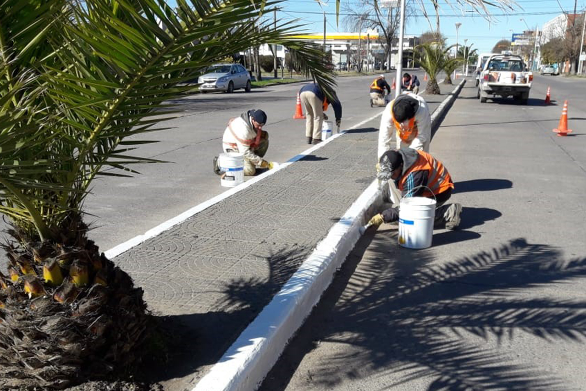 En este caso, personal de la Dirección de Espacios Verdes inició las tareas de pintura en los separadores de Avenida Del Valle, desde Avenida Pringles hacia Saavedra. En esta semana continuarán estas mismas labores en sentido hacia el barrio Luján.