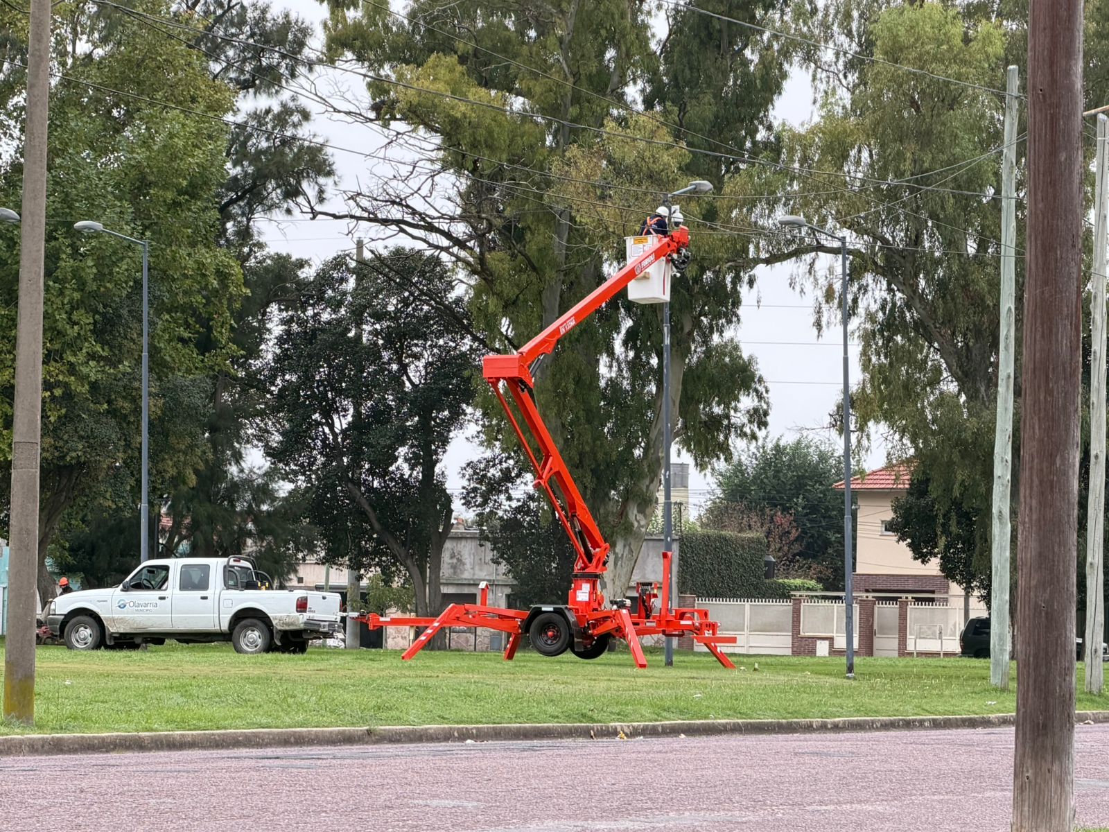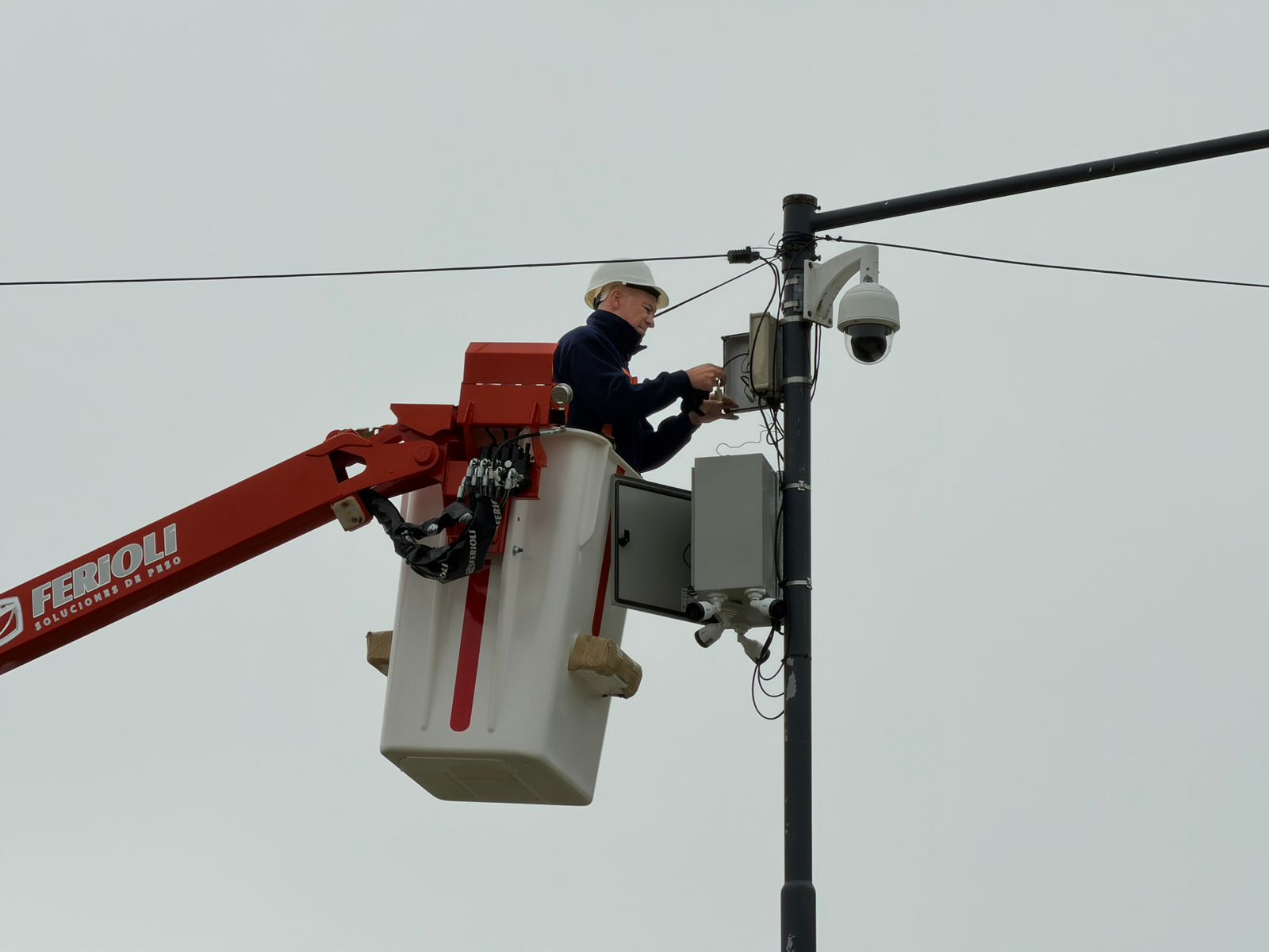 Por otra parte, con la hidrogrúa recientemente adquirida por el Municipio de Olavarría, personal de la Secretaría de Protección Ciudadana llevó adelante tareas de mantenimiento de cámaras de seguridad, en el sector del Corsódromo, teniendo en cuenta que la actual gestión municipal tomó la medida que los trabajos en materia de reparación, recambio e instalación de nuevos dispositivos estén a cargo de la comuna.